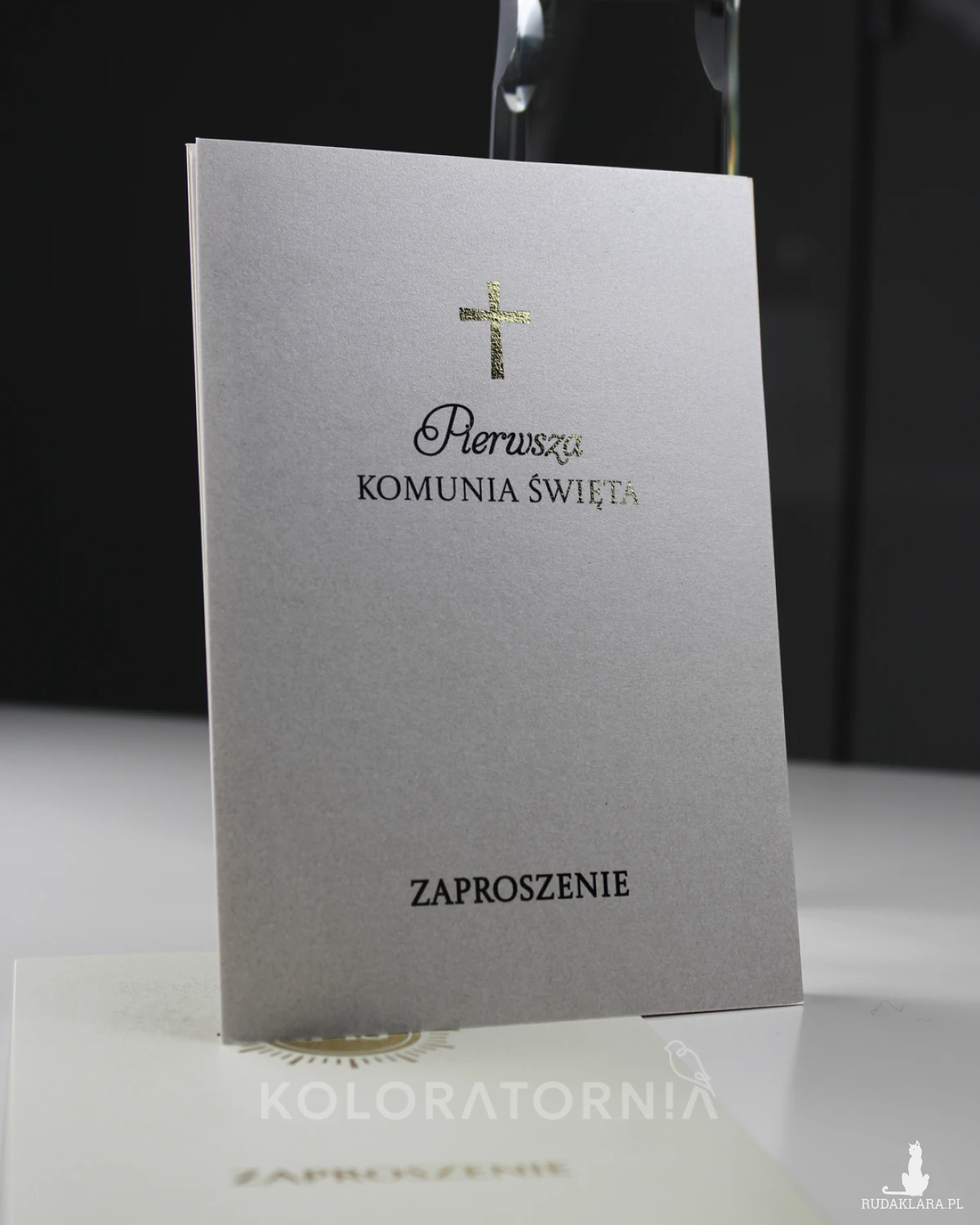 Zaproszenie na imprezę z okazji Pierwszej Komunii Świętej ze złoceniem.