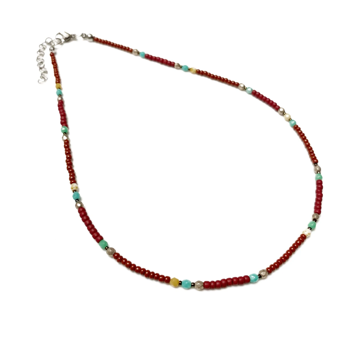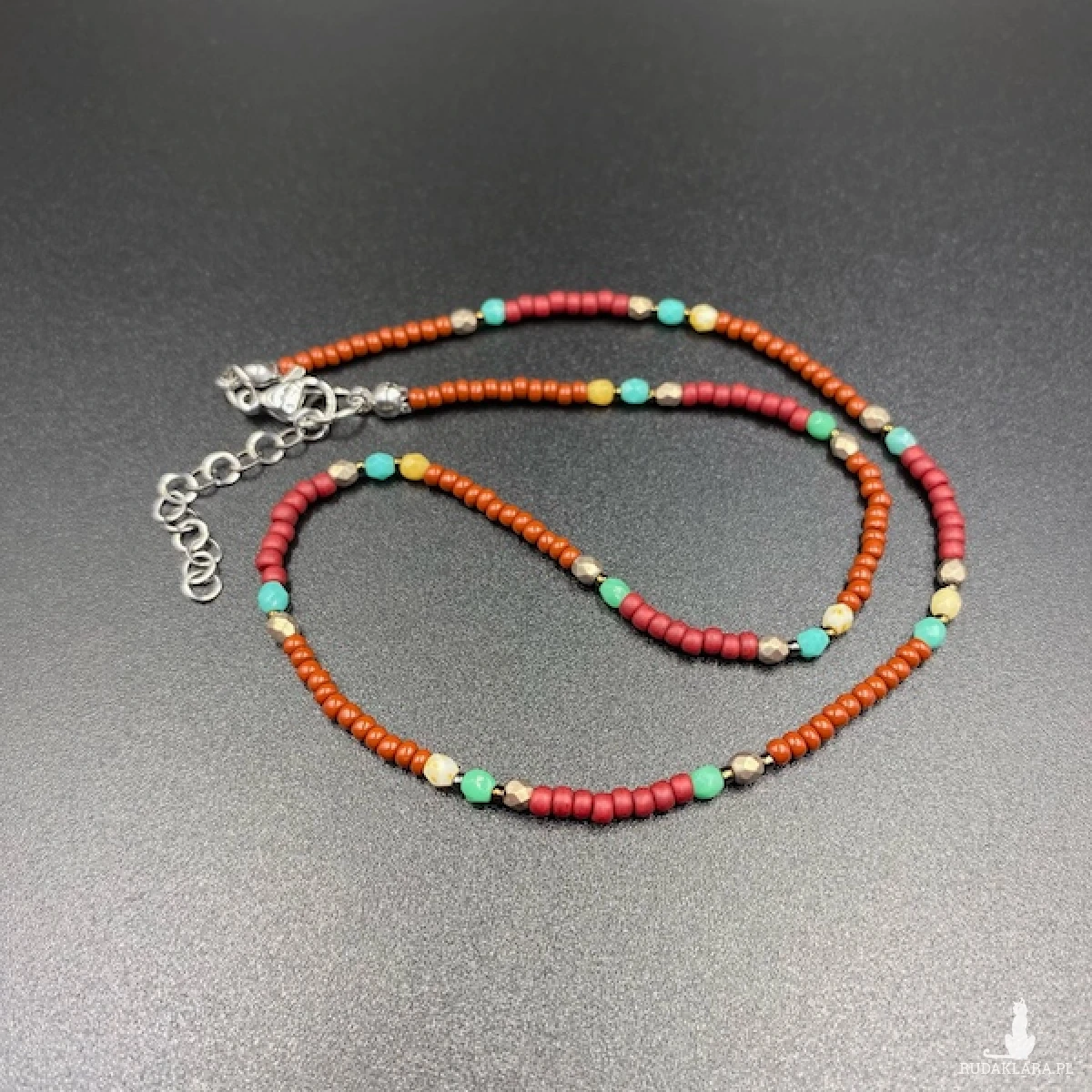 Krótki naszyjnik został wykonany ręcznie z czeskich, szklanych koralików szlifowanych Fire Polish 3 mm i Jablonex 3 mm.