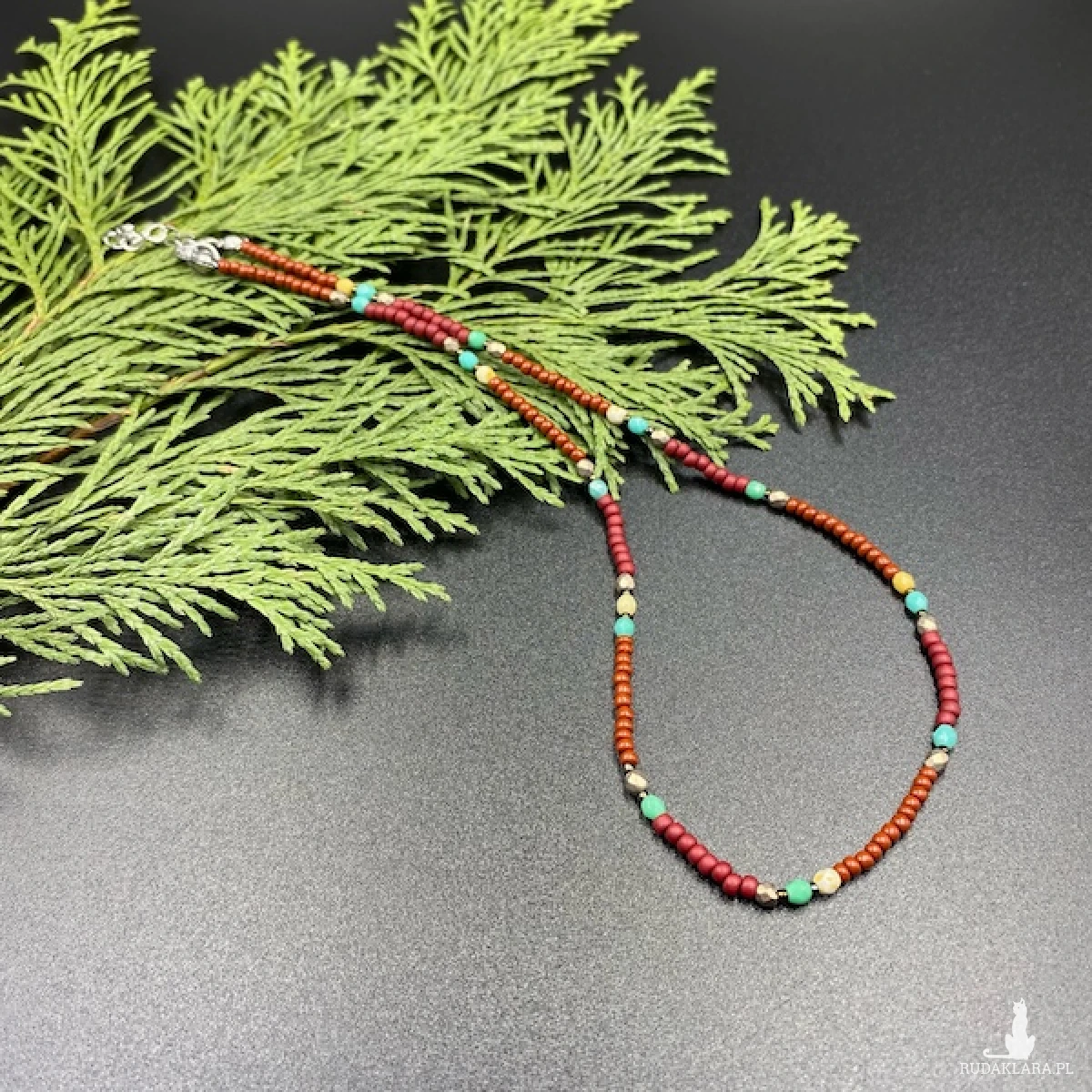 Kolory: rudo-brązowy, bordowy, turkusowy, beżowy.