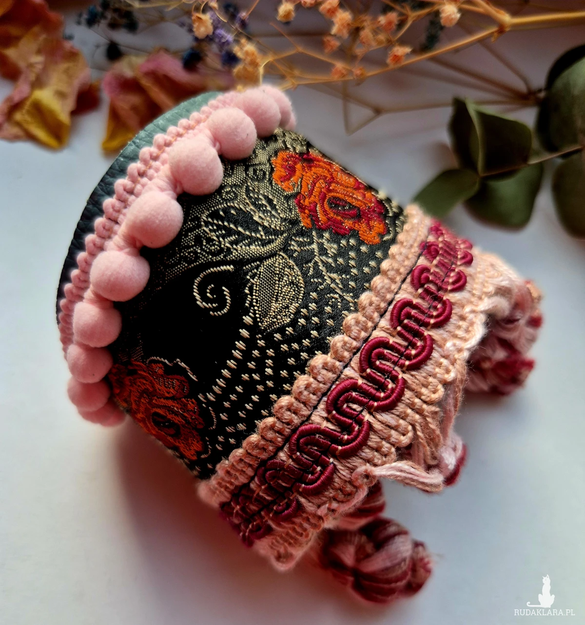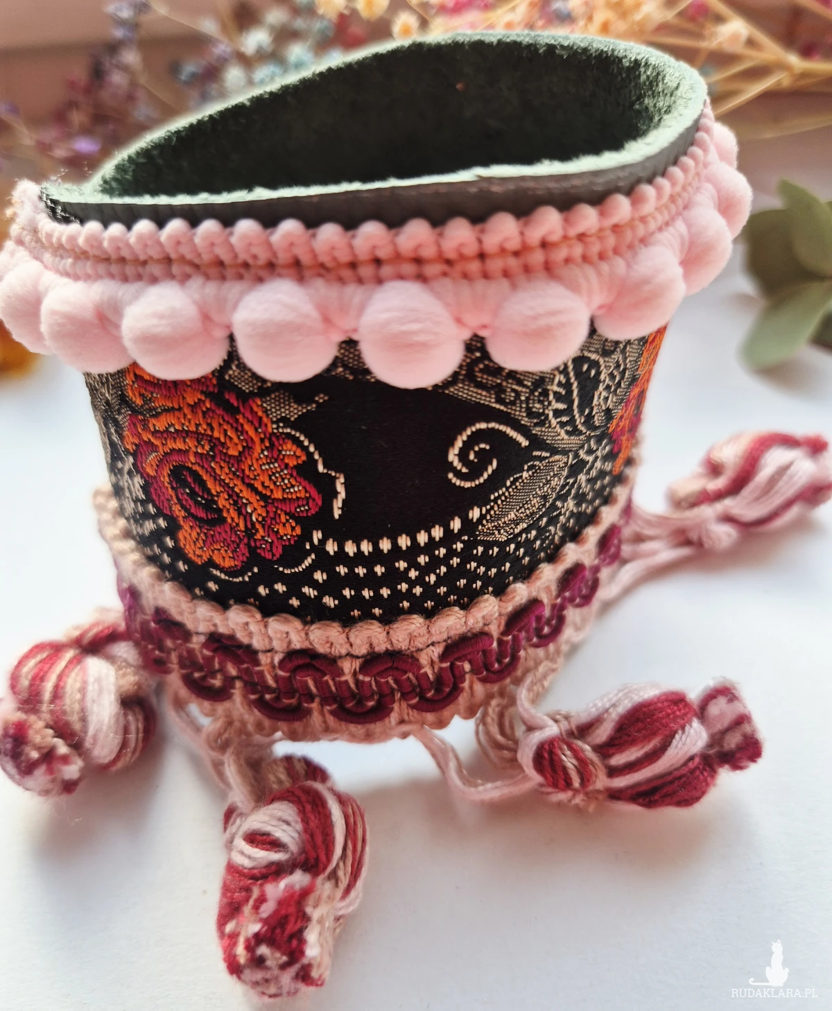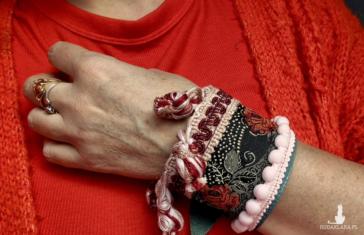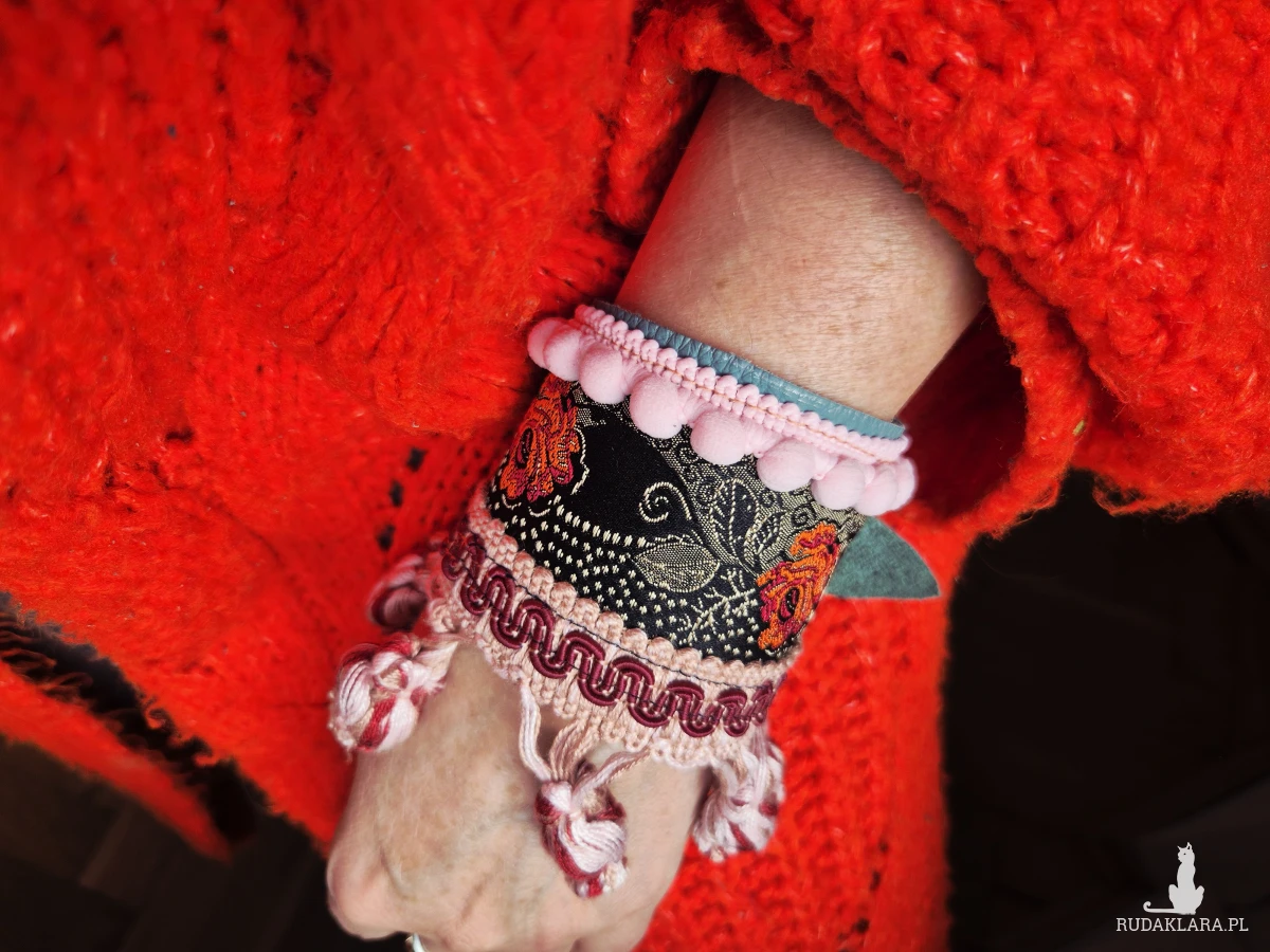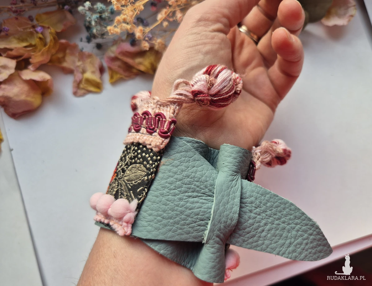 Szeroka bransoletka uniwersalna ze skóry z ozdobną taśmą Świetnie wygląda zakładana kopertowo polecam Box X1
