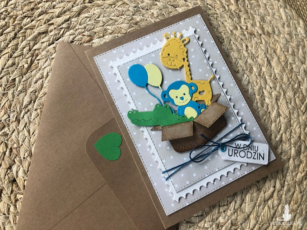 Kartka z okazji urodzin dziecka .Wykonana na bazie kraftowej o wym.11,5x16 do kompletu z kopertą o wym.12,5x17. Kartka wykonana z dbałością o każdy detal. Wewnątrz kartki umieszczono miejsce na życzenia oraz kieszonkę na małe co nieco. W tej postaci kartka dostępna od ręki.