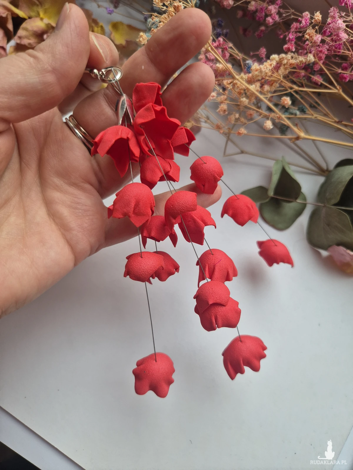 Leciutkie kolczyki kwiaty rękodzieło polecam