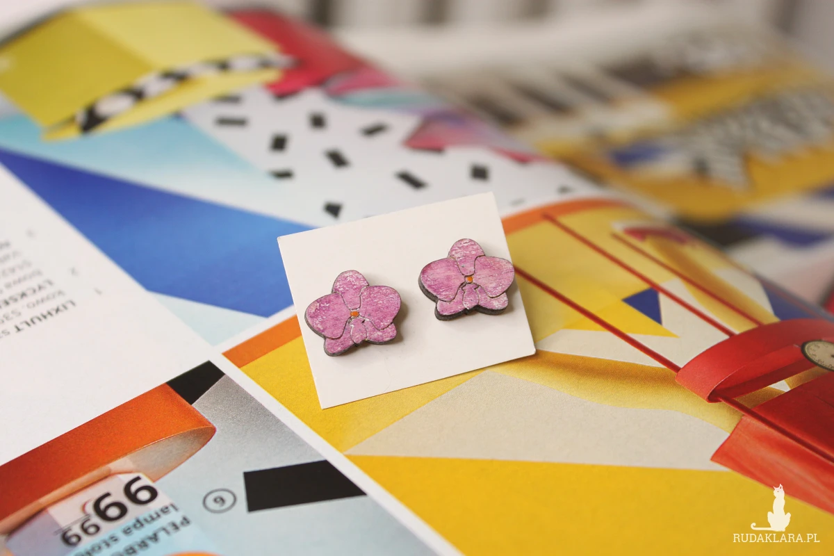 Drewniane kolczyki sztyfty Storczyk kwiat
