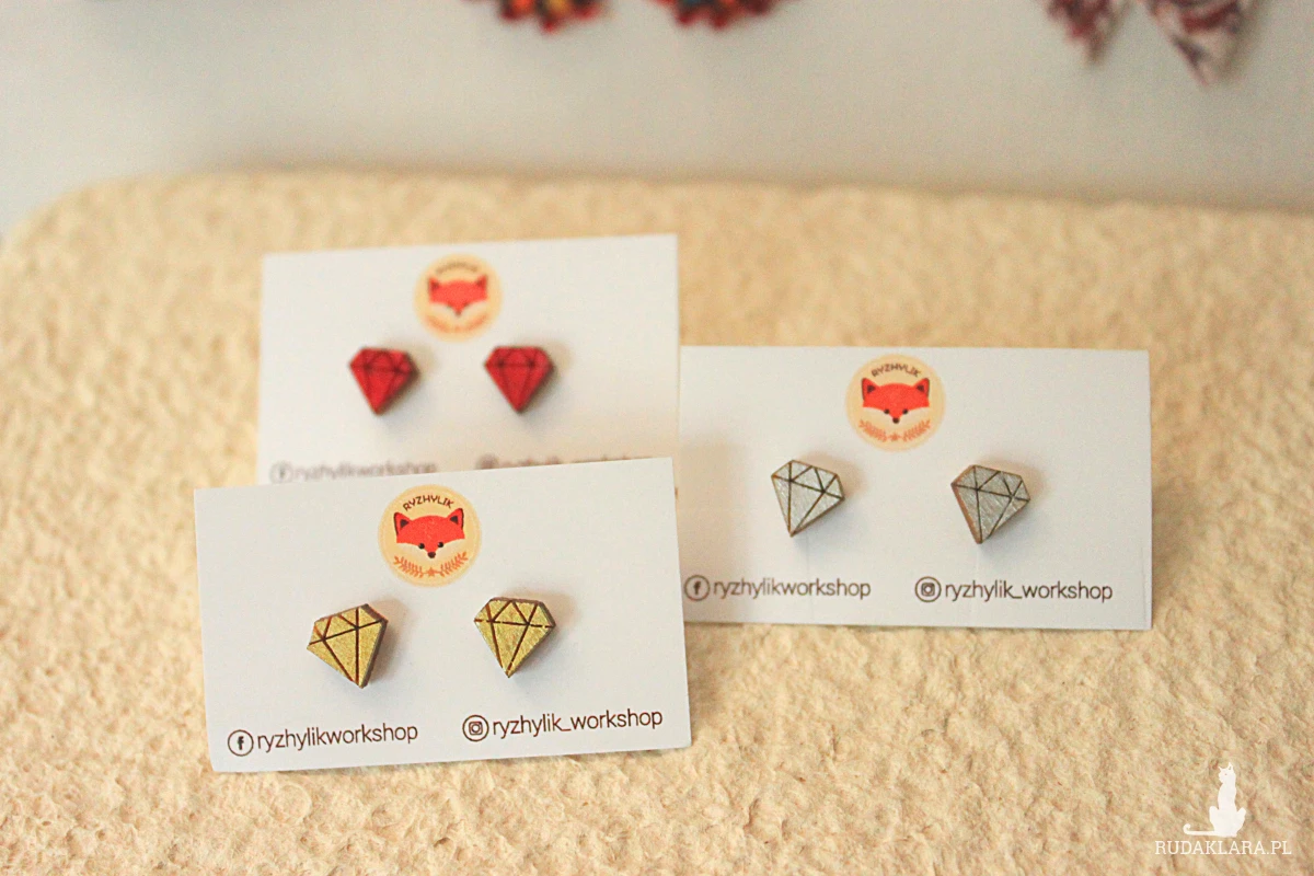 Drewniane kolczyki sztyfty #koniczyna.