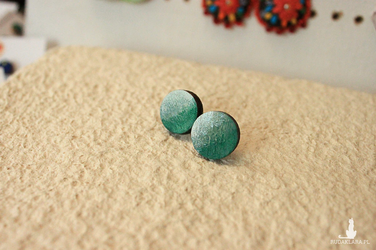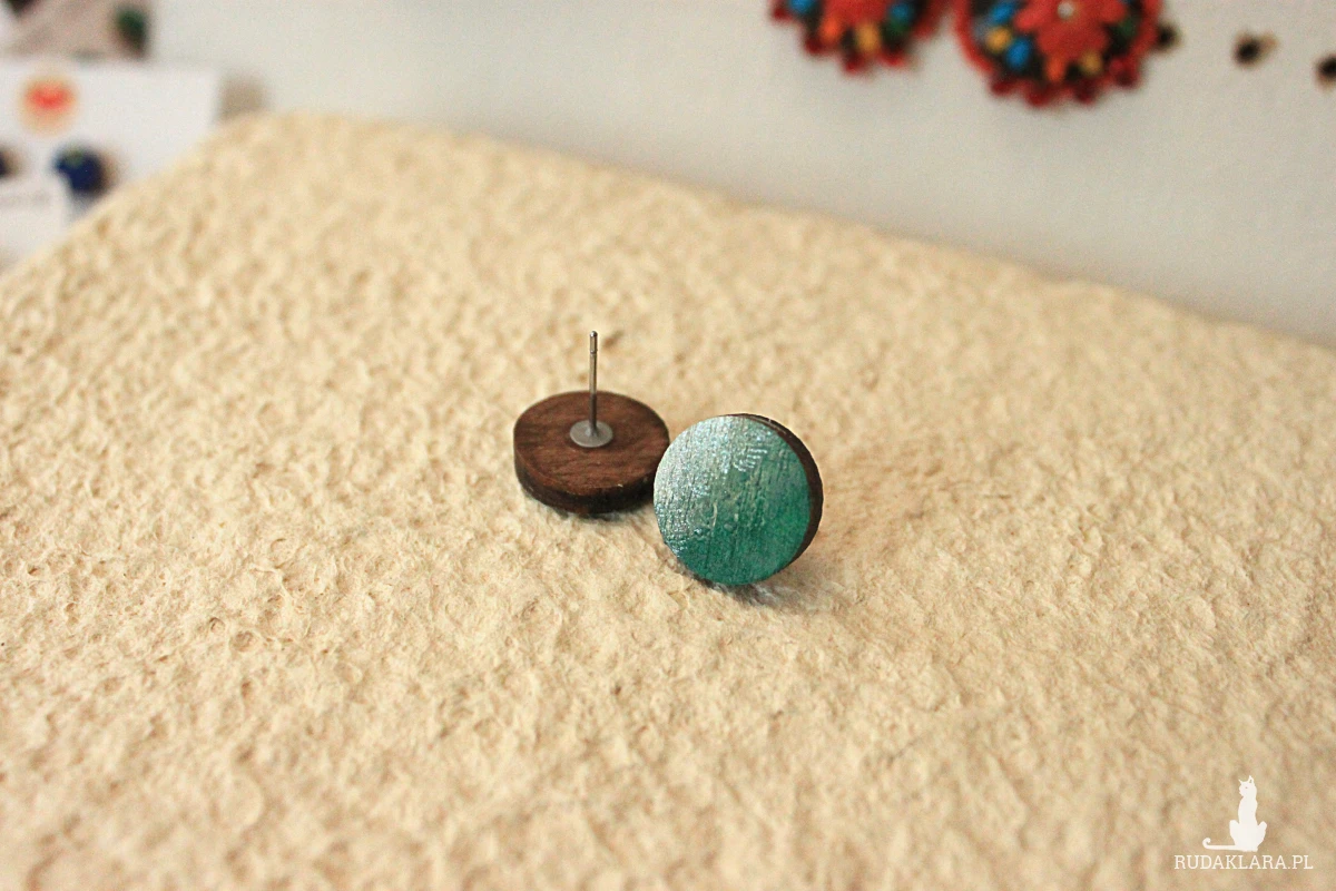 Drewniane kolczyki sztyfty #koniczyna.