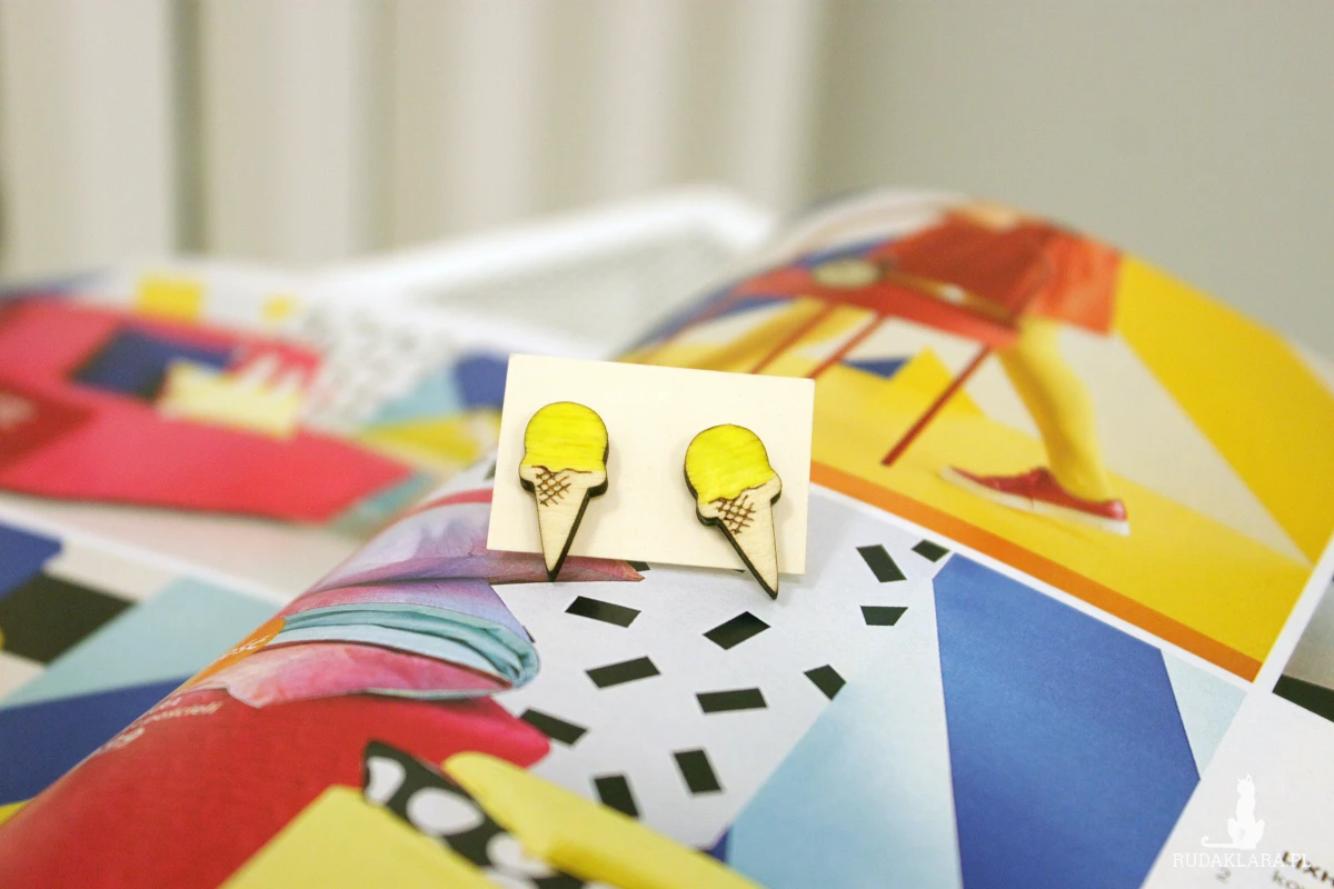 Drewniane kolczyki sztyfty Lody