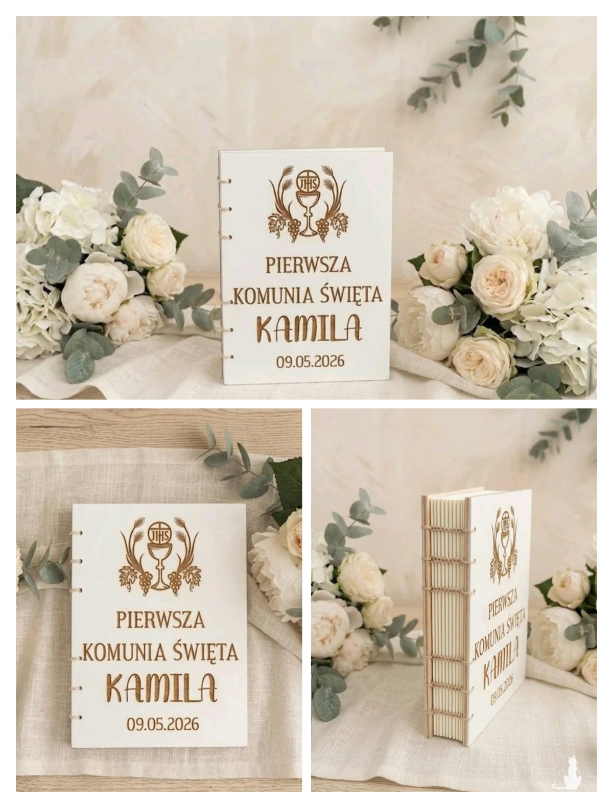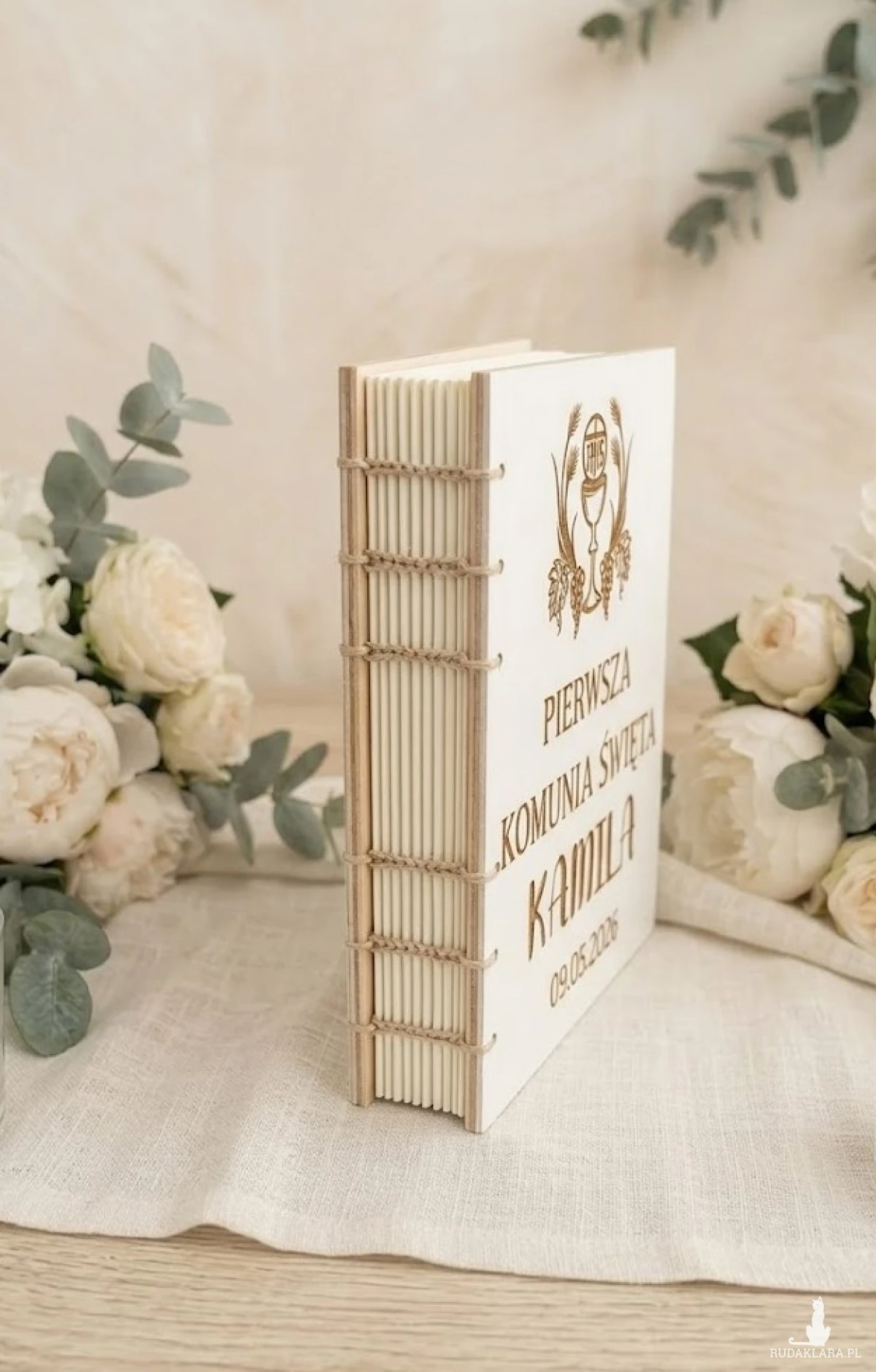 Każdy egzemplarz jest grawerowany na zamówienie osobiste klienta, co sprawia, że nie ma dwóch identycznych książek. Delikatne zdobienia podkreślają indywidualny styl i nadają całości niepowtarzalny, artystyczny wygląd. Szycie zapewnia trwałość i solidność, a jednocześnie dodaje wyrobowi tradycyjnego, rzemieślniczego charakteru.