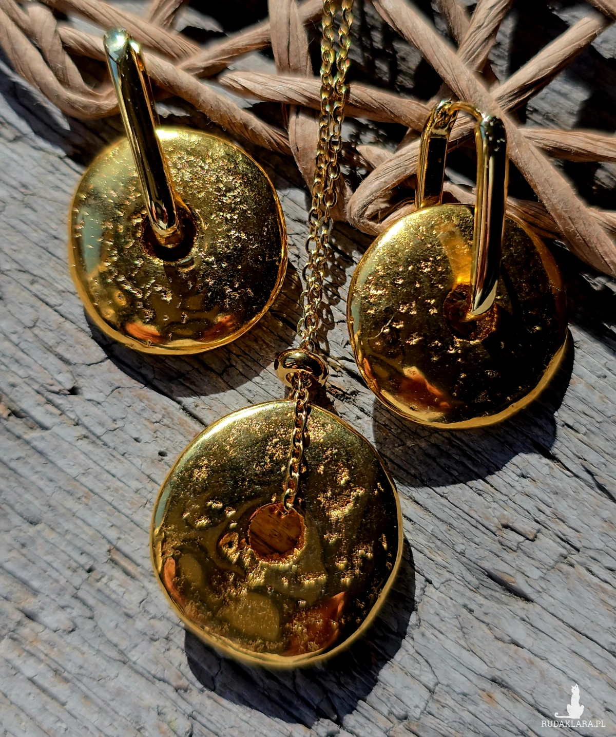 Komplet w etnicznym stylu łączący bogactwo złota z prostotą formy. Donaty nie są integralną częścią bigla. Można je swobodnie zdjąć, na biglach zawiesić inną ozdobę lub nosić je solo.