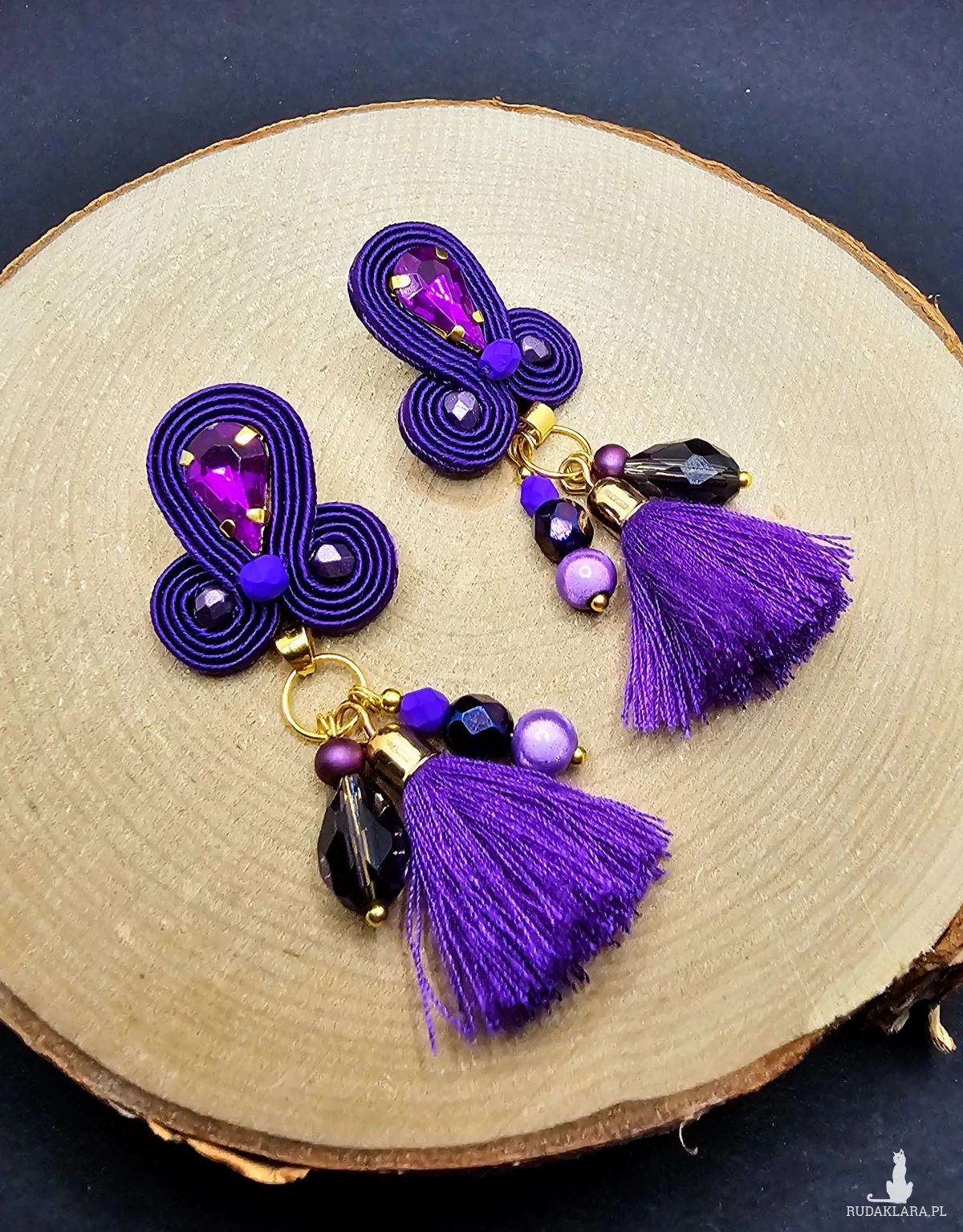Fioletowe kolczyki sutasz z chwostami