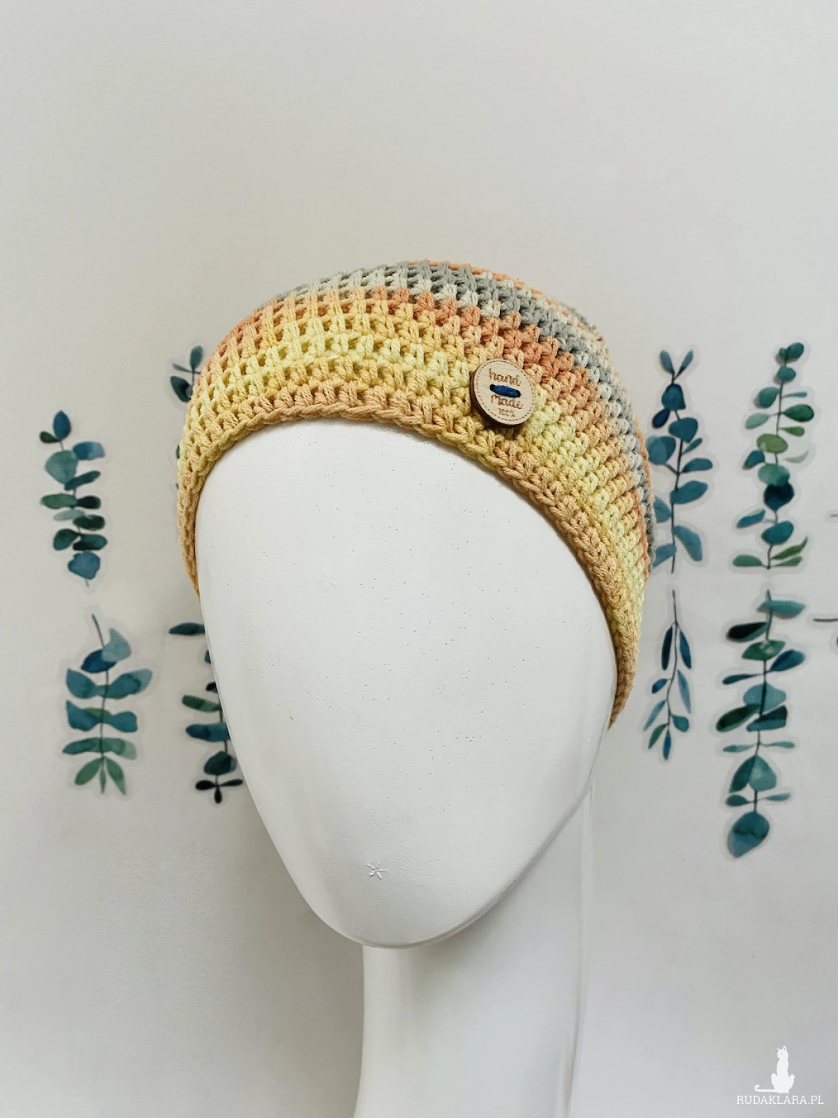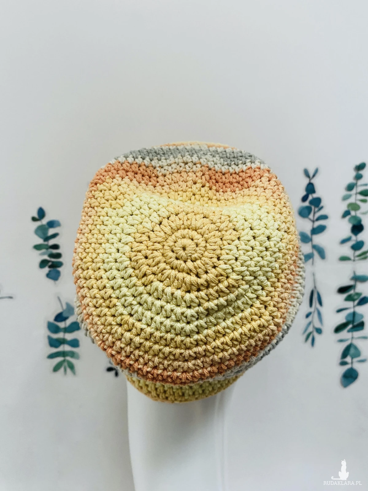 Czapkę wykonałam z wysokiej jakości włóczki bawełniano-akrylowej, która zapewnia wygodę noszenia przez cały dzień.