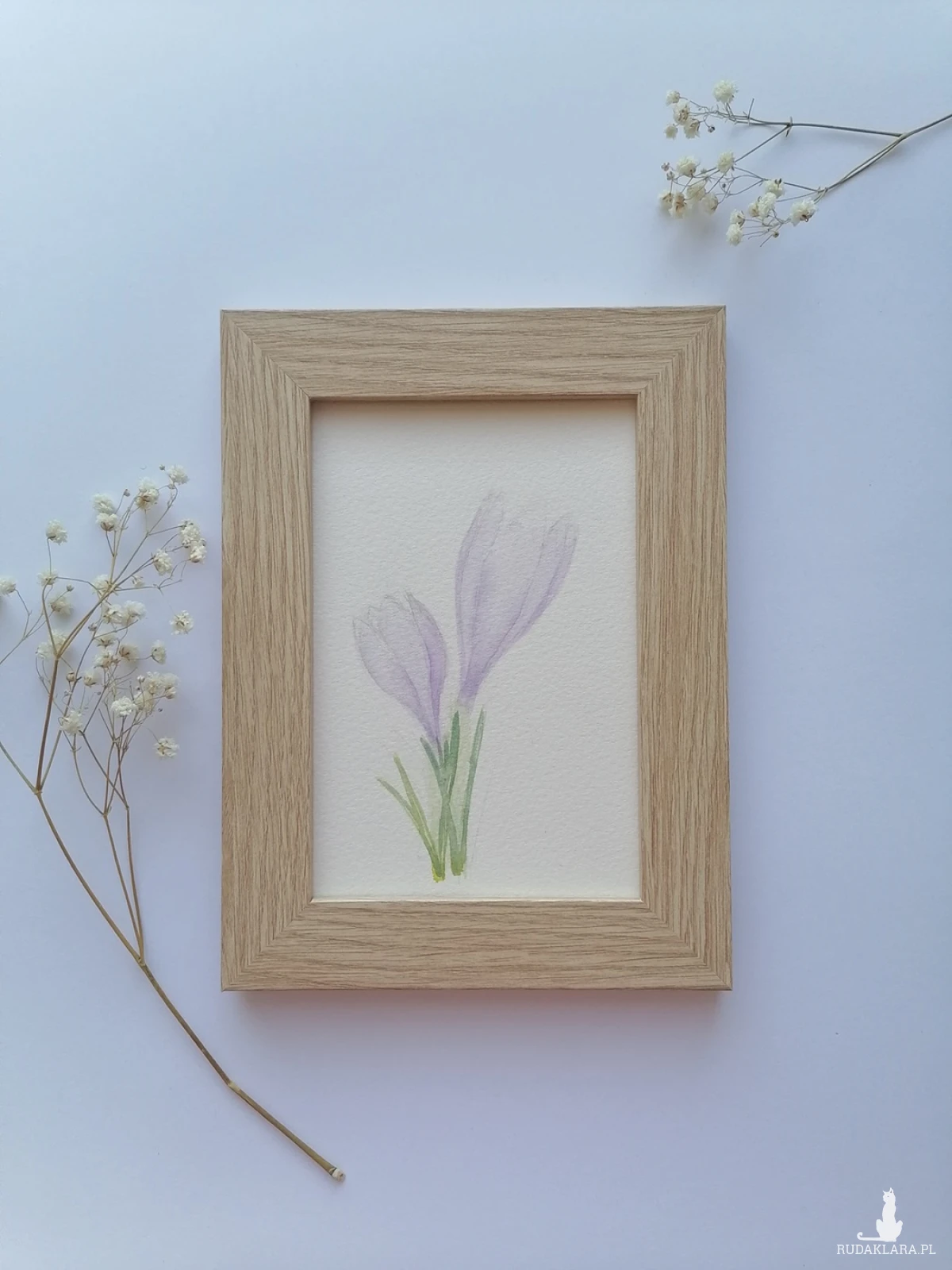 Ręcznie malowana akwarela przedstawia pierwsze chwile wiosny, gdy świat budzi się do życia, gdy rodzi się nadzieja i wszystko nabiera świeżych barw. Pracę malowałam lekkimi ociągnięciami pędzla, pozwalając, by pozostała niedopowiedziana, nieoczywista - tak jak nadchodzące chwile są zagadką i nadzieją, że jutro będzie lepsze, niż to, co dziś nas otacza.