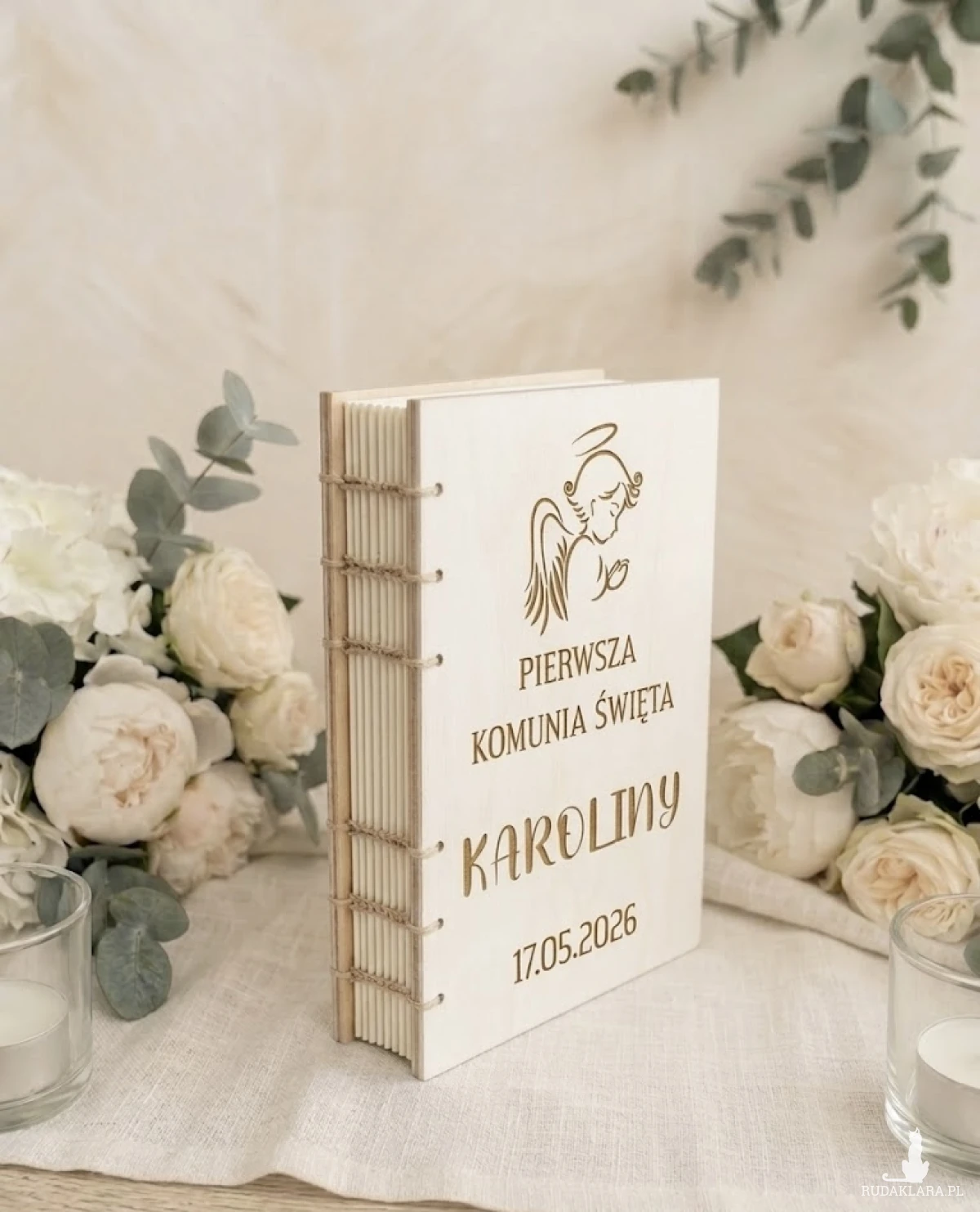 Każdy egzemplarz jest grawerowany na zamówienie osobiste klienta, co sprawia, że nie ma dwóch identycznych książek. Delikatne zdobienia podkreślają indywidualny styl i nadają całości niepowtarzalny, artystyczny wygląd. Szycie zapewnia trwałość i solidność, a jednocześnie dodaje wyrobowi tradycyjnego, rzemieślniczego charakteru.