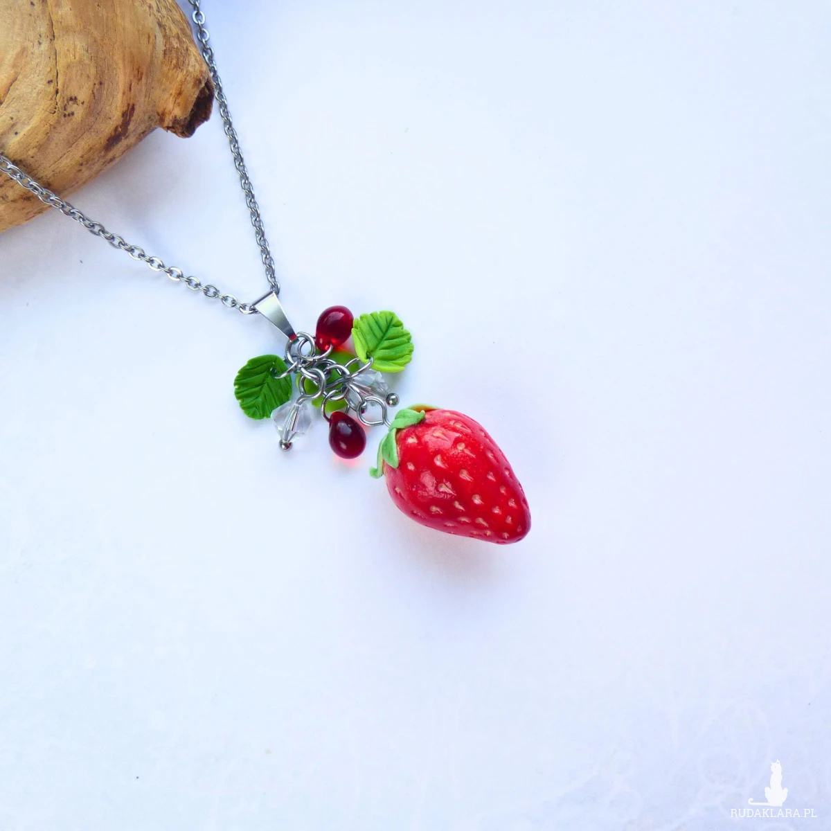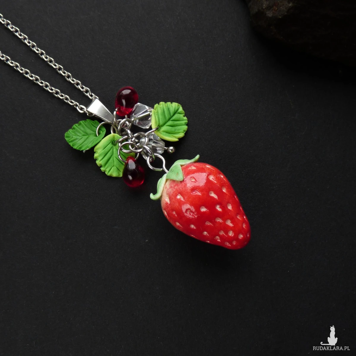 Truskawkowy naszyjnik to biżuteria dla osób, które kochają oryginalne dodatki, motywy inspirowane naturą i przedmioty tworzone z sercem. Świetnie sprawdzi się noszony solo jako uroczy, wyrazisty akcent, ale może też tworzyć piękny komplet z kolczykami w tym samym stylu.
