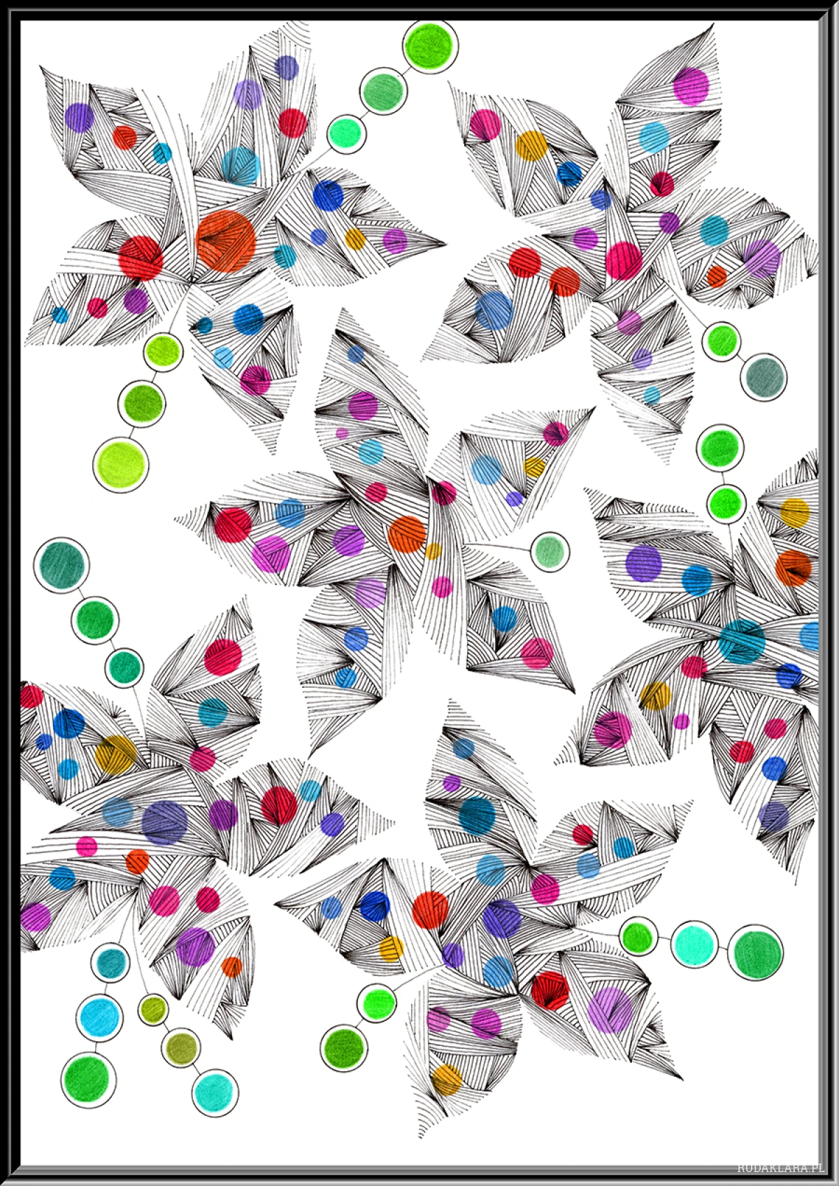Styl:Abstrakcja geometryczna, Zentangle / Doodling, Minimalizm kolorystyczny, Graficzny.
