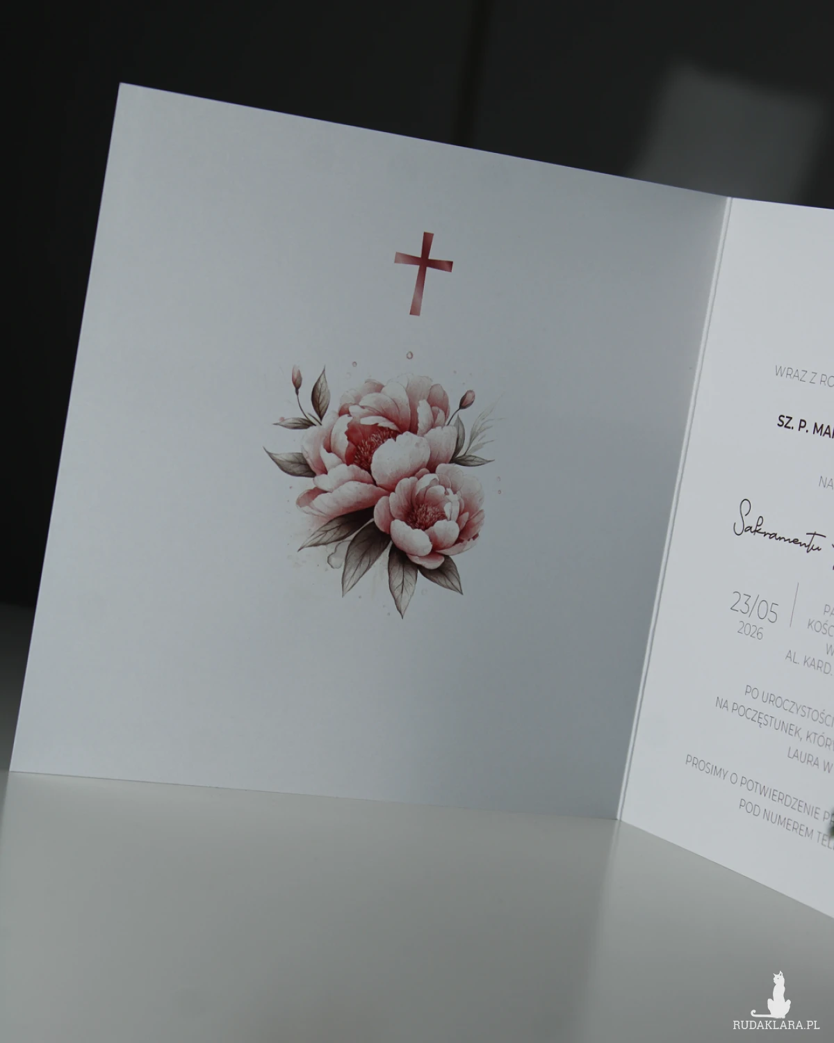 Do zaproszenia dołączona jest biała ozdobna koperta.