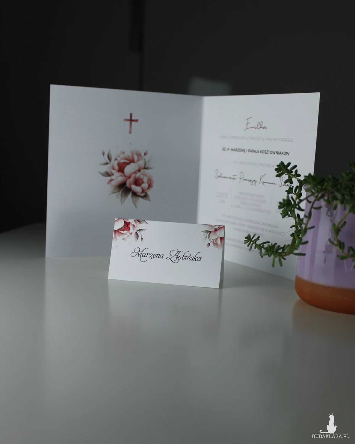 PERSONALIZACJA zaproszenia - przy składaniu zamówienia, w widomości dla sprzedającego podaj imię dziecka, datę, godzinę, parafię, lokal oraz telefon do potwierdzenia przybycia.