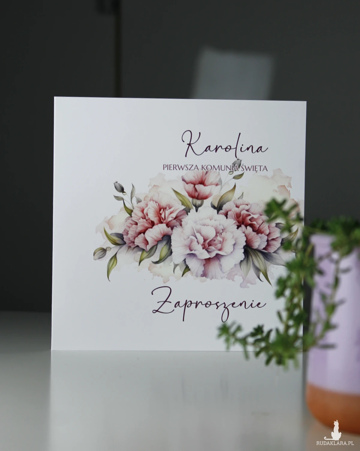 PERSONALIZACJA zaproszenia - przy składaniu zamówienia, w widomości dla sprzedającego podaj imię dziecka, datę, godzinę, parafię, lokal oraz telefon do potwierdzenia przybycia.
