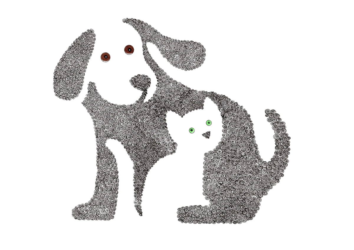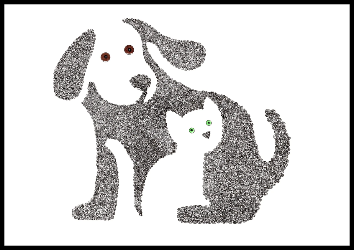"Pies z Kotem" to coś więcej niż tylko rysunek – to zaproszenie do świata subtelnych form i harmonii. To idealny wybór dla tych, którzy cenią niebanalne rozwiązania i szukają ozdoby, która przyciągnie wzrok i zachwyci swoim subtelnym pięknem.