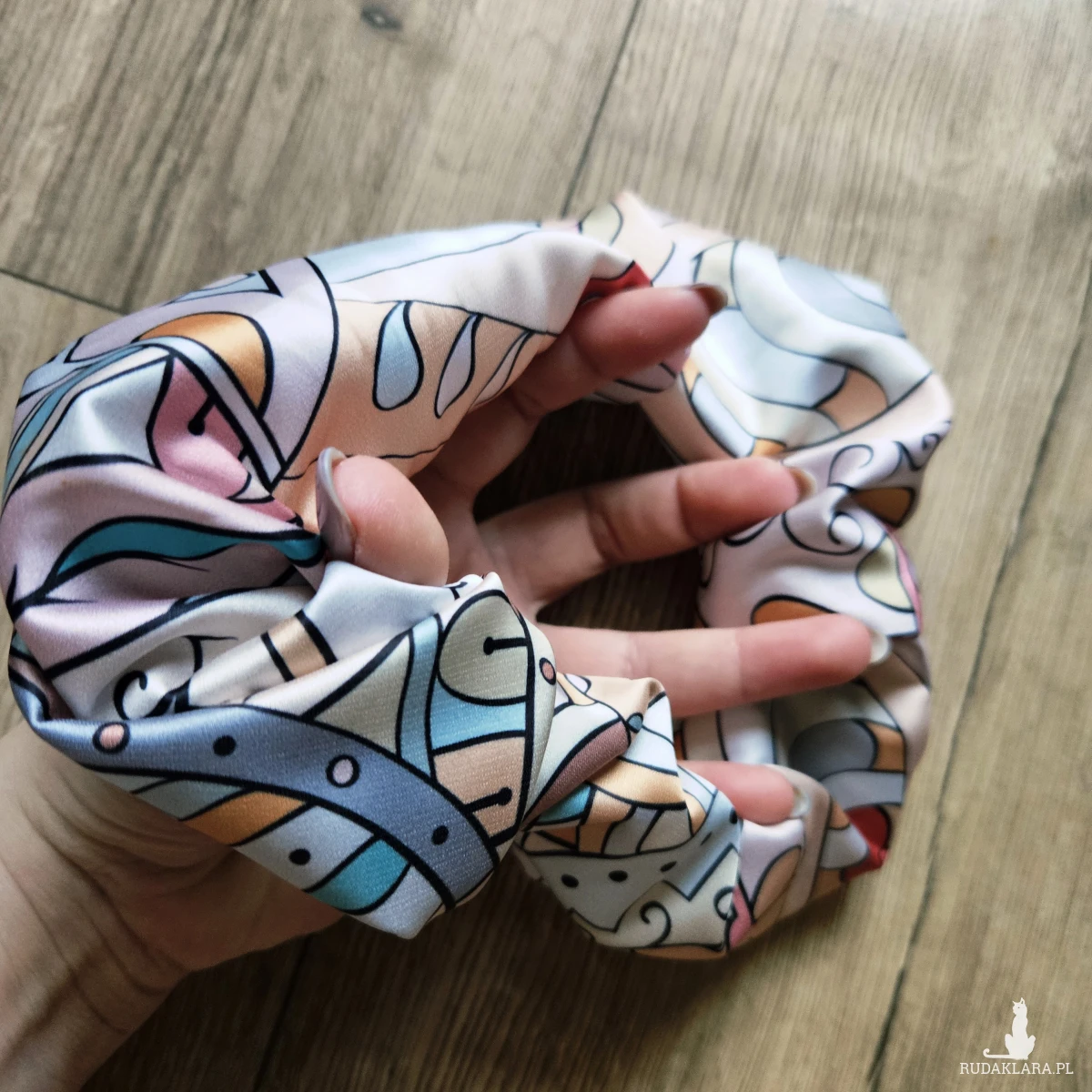 Satynowa gumka do włosów w piękne wzory to elegancki i praktyczny dodatek, który zadba o Twoje włosy każdego dnia. Wykonana ręcznie z delikatnej, gładkiej satyny, jest przyjazna dla włosów – nie ciągnie, nie łamie i nie powoduje odgnieceń, podobnie jak jedwabne akcesoria.
