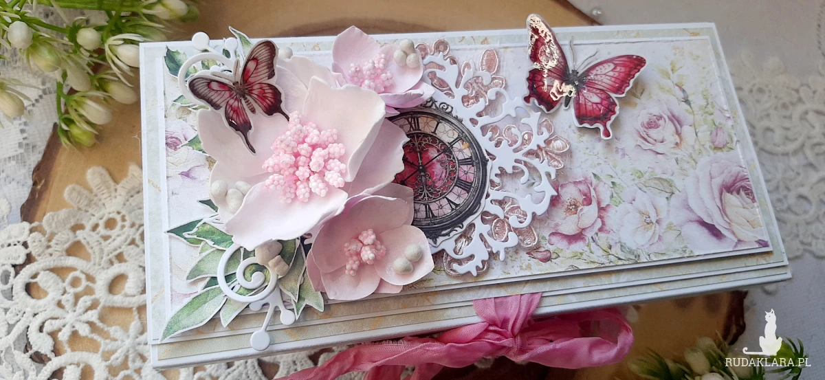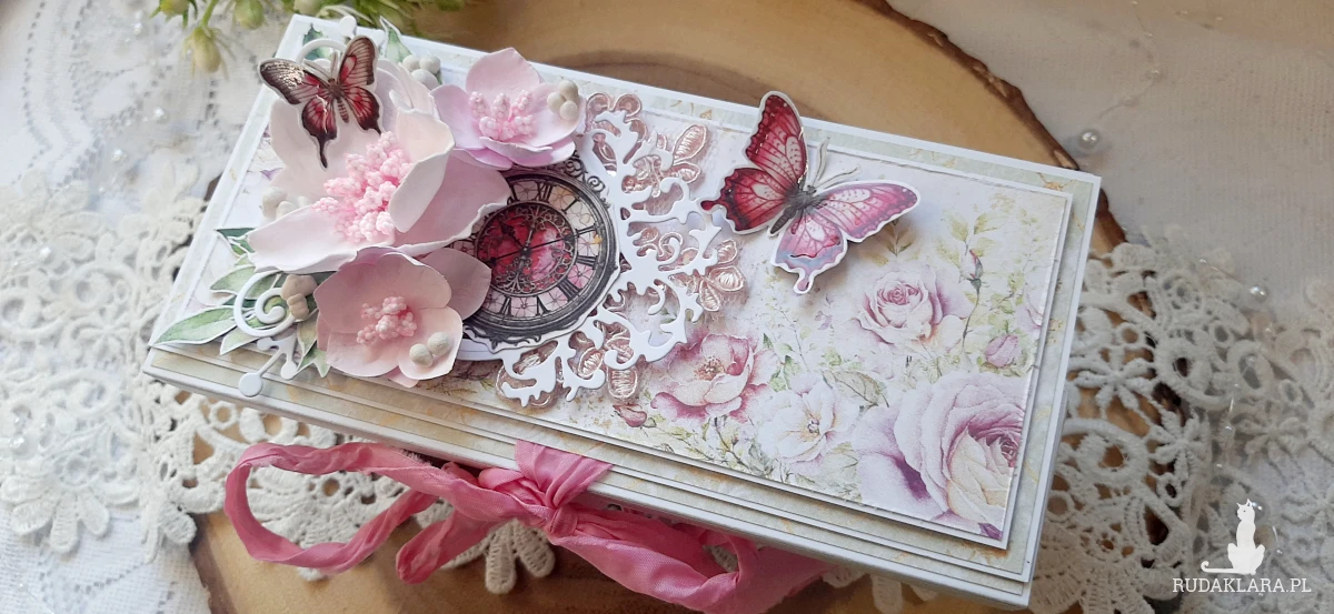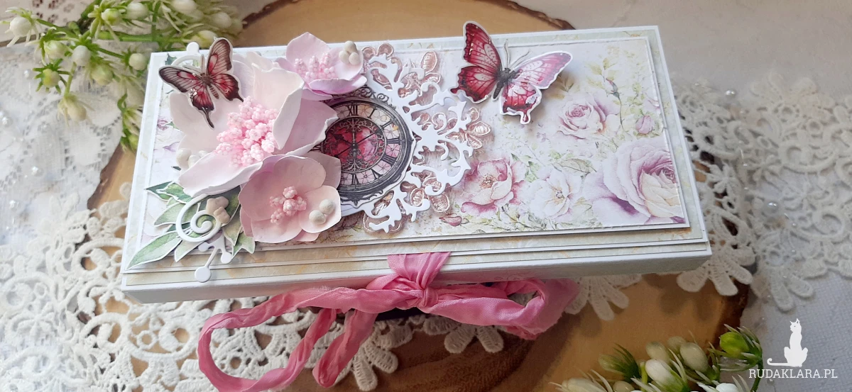 Czekoladownik czyli ozdobne pudełko na czekoladę o wymiarach 17,5x9x1,5 cm. Zmieści się do niego czekolada Wedla czy Milka. W środku karteczka podklejona taśmą dwustronną, na której można wypisać życzenia i przykleić na wewnętrznej stronie wieczka.