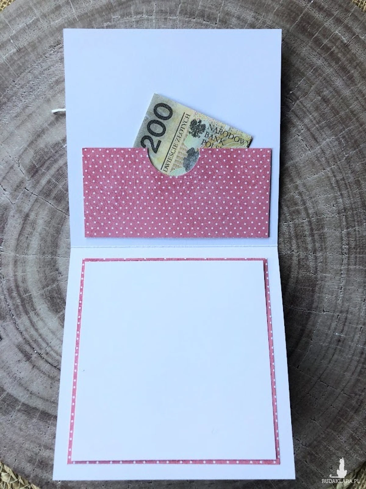 Urocza kartka z okazji narodzin bobasa/ chrztu lub urodzinek - wykonana na bazie kartonu białego z misiem.Wielkość kartki to 13,5x13,5.Wewnątrz miejsce na życzenia oraz kieszonka na małe co nieco (przykład). do karty dołączona biała koperta - solidna, o bardzo wysokiej gramaturze (120g), ozdobiona pasującym motywem. na zdjęciu pokazana koperta.