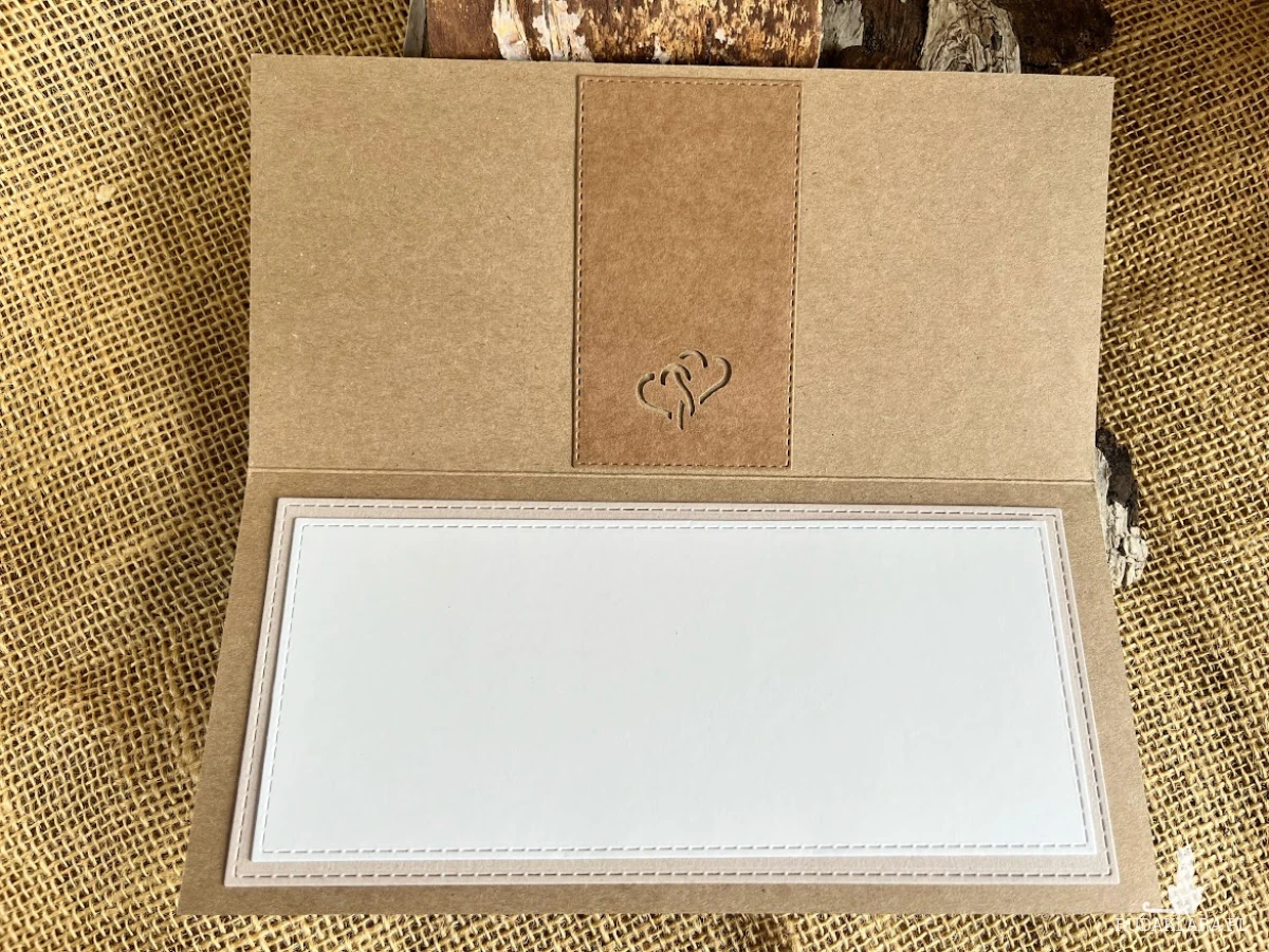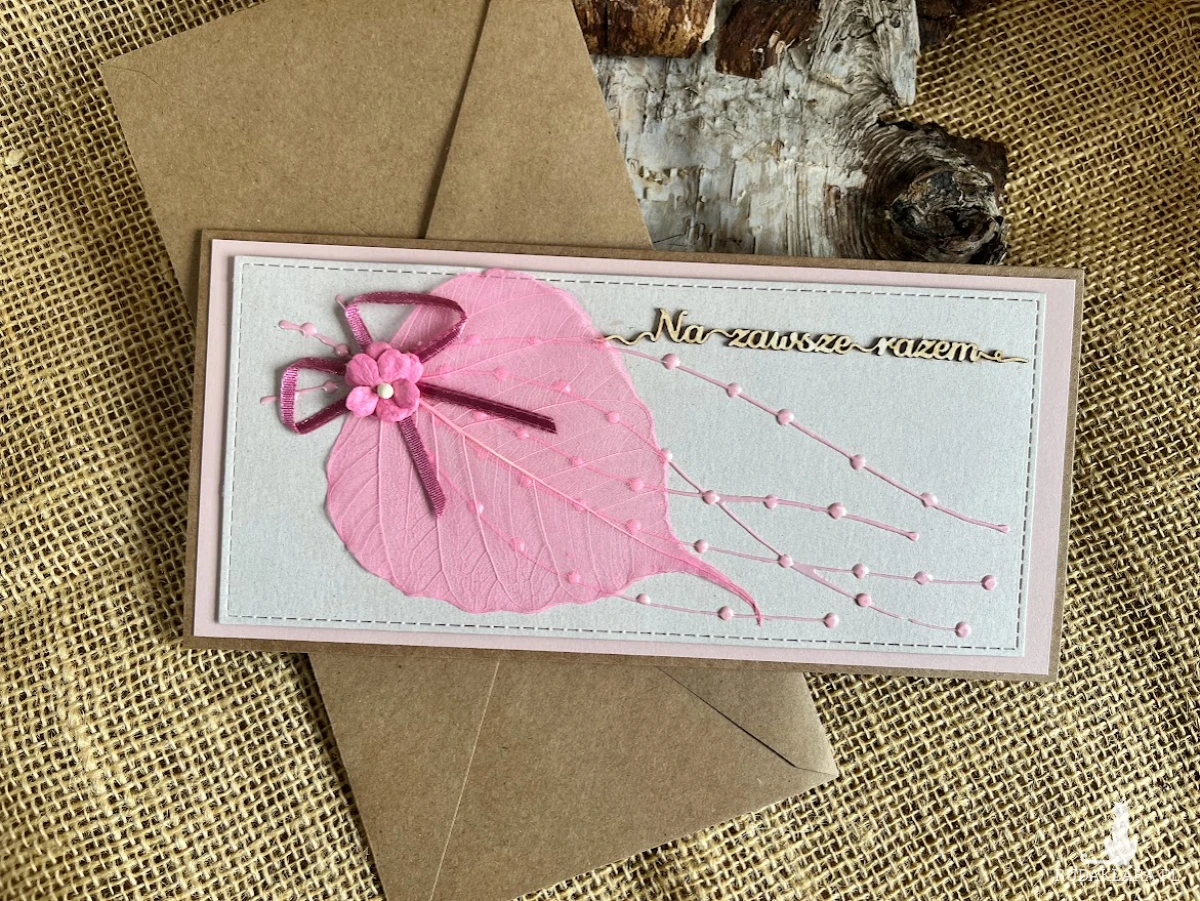Wyjątkowa i elegancka kartka okolicznościowa (bez personalizacji) wykonana z najwyższej jakości materiałów do scrapbookingu w stylu eco. Zdobiona elementami 3D. Wykonana z dbałością o każdy detal. Kartka bardzo przestrzenna z kopertą.Wewnątrz kartki znajduje się kieszonka na małe co nieco lub kupon lotto oraz miejsce na własne życzenia.Wielkość kartki 11x21 a koperty 12x22.