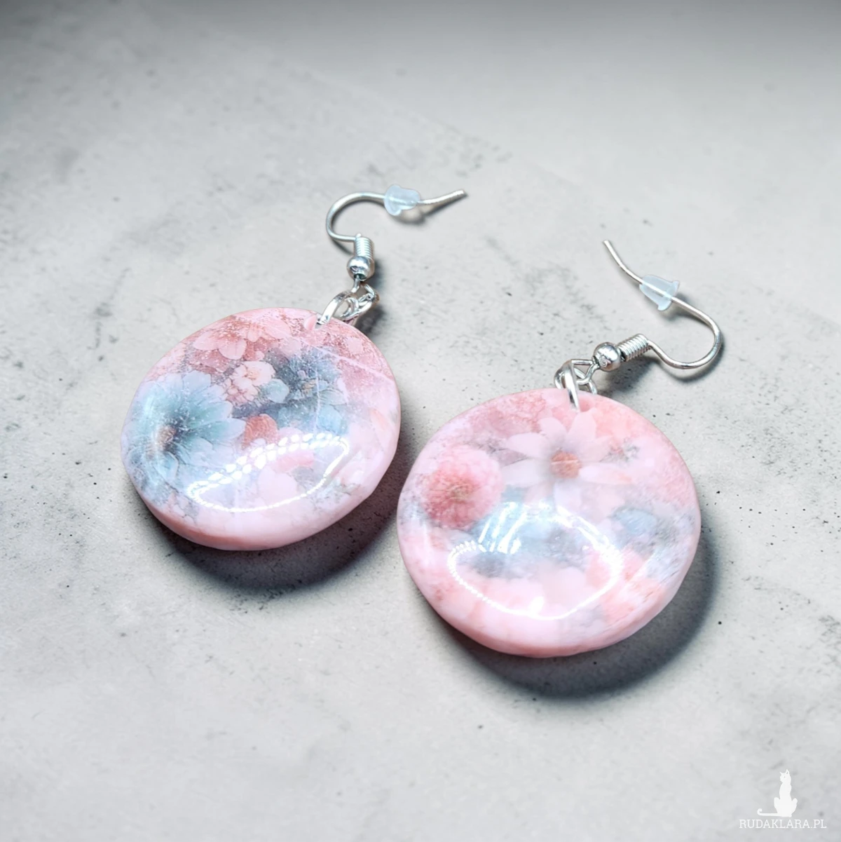 Oferuję ręcznie wykonane kolczyki, stworzone z gliny polimerowej i zalane transparentną żywicą, która nadaje im wyjątkową głębię i piękny połysk. W środku zatopione są delikatne kompozycje kwiatowe w odcieniach różu i czerwieni – każdy egzemplarz jest niepowtarzalny.