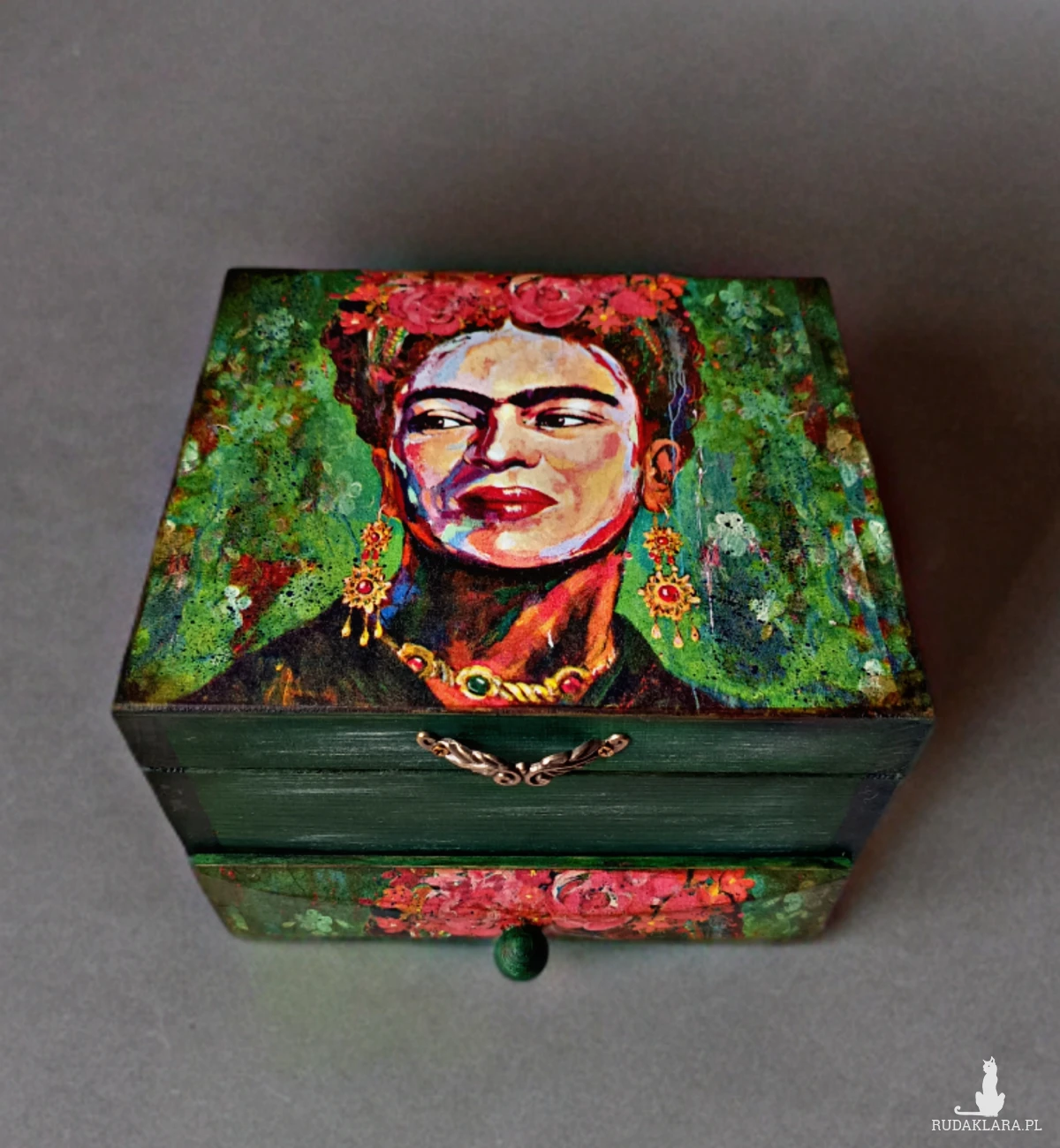 Ozdobiona za pomocą techniki decoupage.