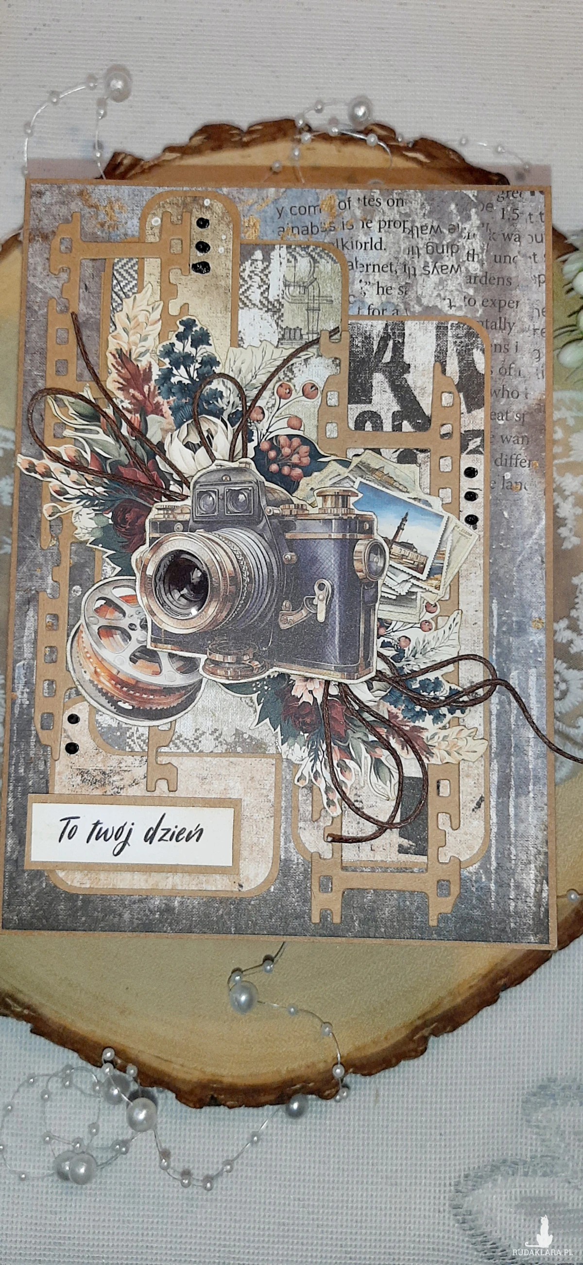 Kartka okolicznościowa, ręcznie wykonana metodą scrapbooking na bazie kraftowej. Kartka do koperty. Oklejona z każdej strony. W środku znajduje się kartka podklejona taśmą dwustronną na życzenia. Mogę też wydrukować życzenia. Wymiary kartki to 12x17 cm. W zestawie z kopertą kraftową.