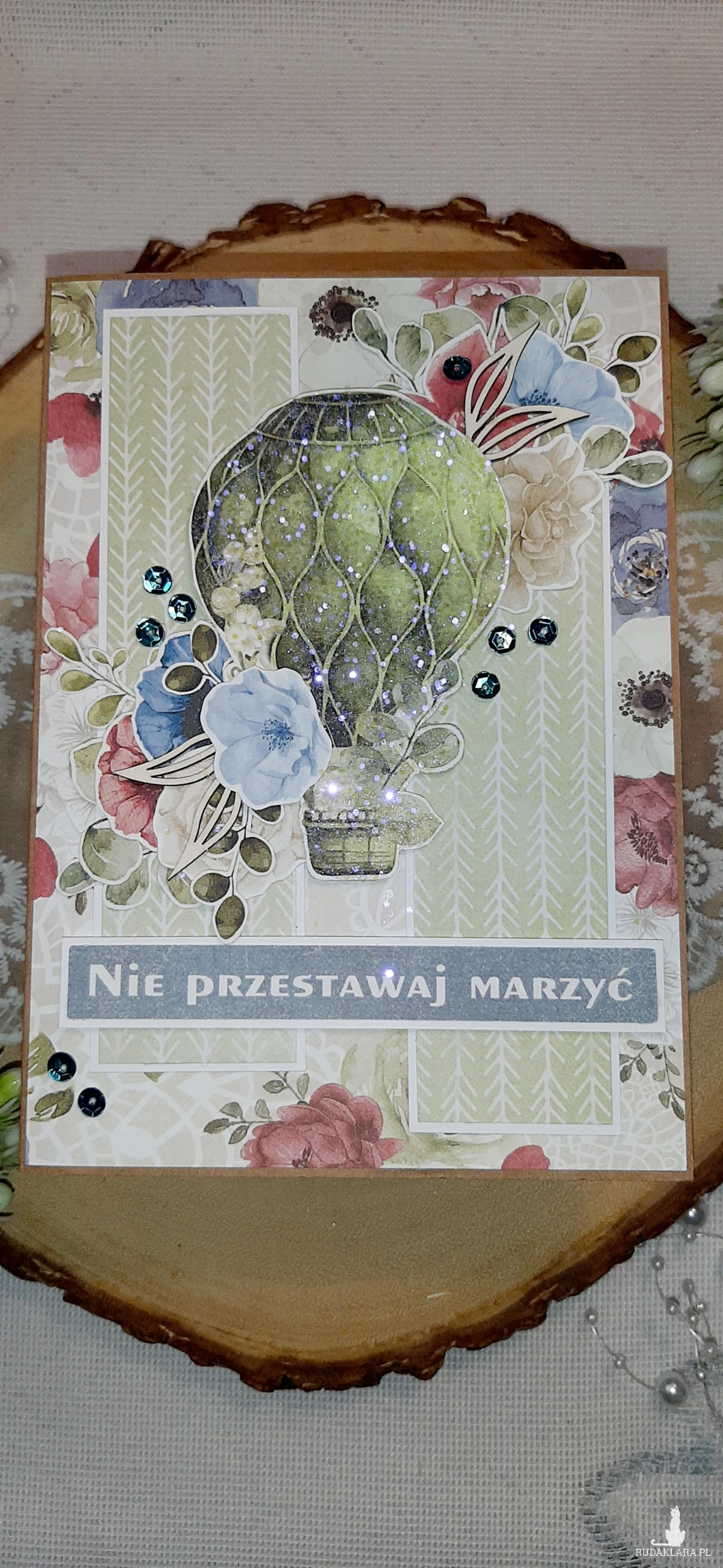Kartka okolicznościowa, ręcznie wykonana metodą scrapbooking na bazie kraftowej. Kartka do koperty. Oklejona z każdej strony. W środku znajduje się kartka podklejona taśmą dwustronną na życzenia. Mogę też wydrukować życzenia. Wymiary kartki to 12x17 cm. W zestawie z kopertą kraftową.