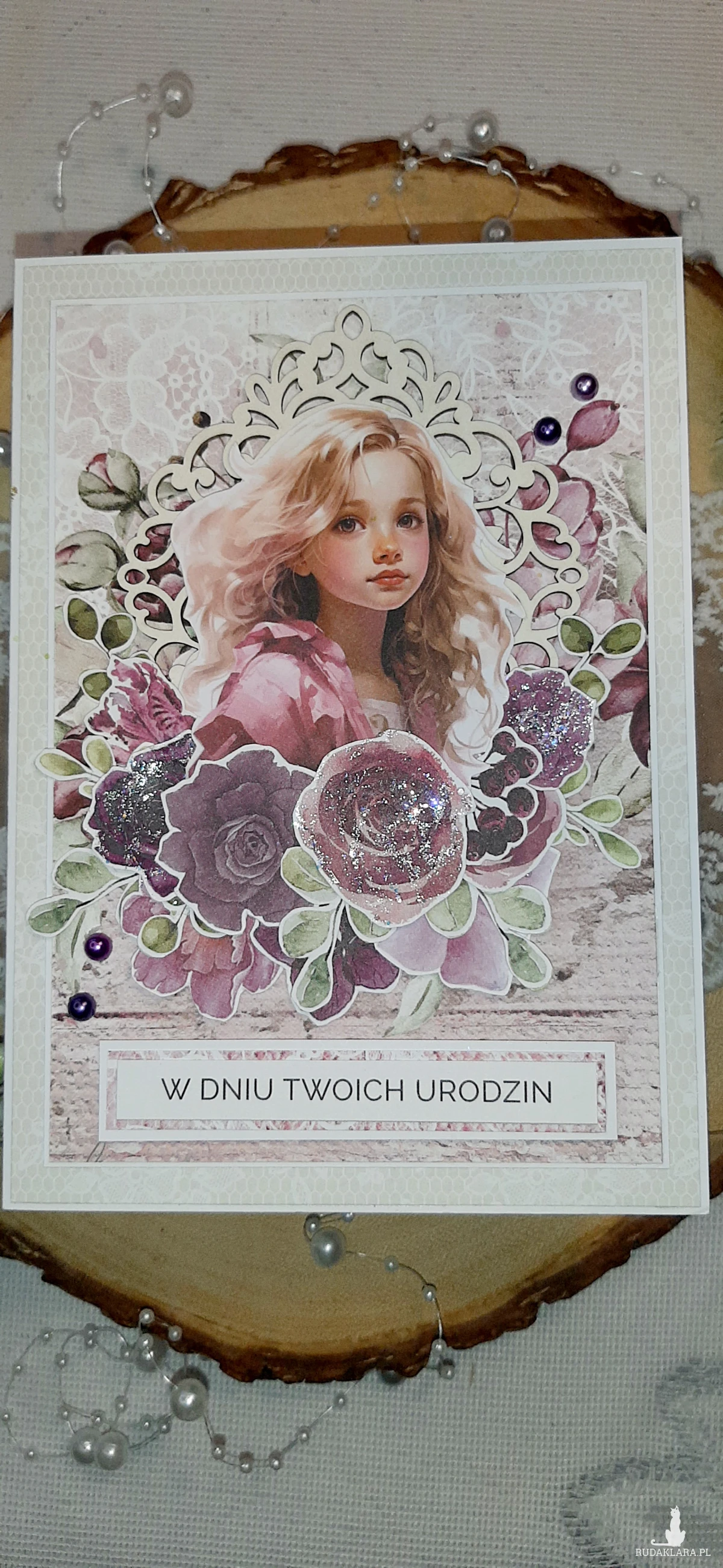 Kartka okolicznościowa, ręcznie wykonana metodą scrapbooking. Kartka do koperty. Oklejona z każdej strony. W środku znajduje się kartka podklejona taśmą dwustronną na życzenia. Mogę też wydrukować życzenia. Wymiary kartki to 12x17 cm. W zestawie z kopertą.