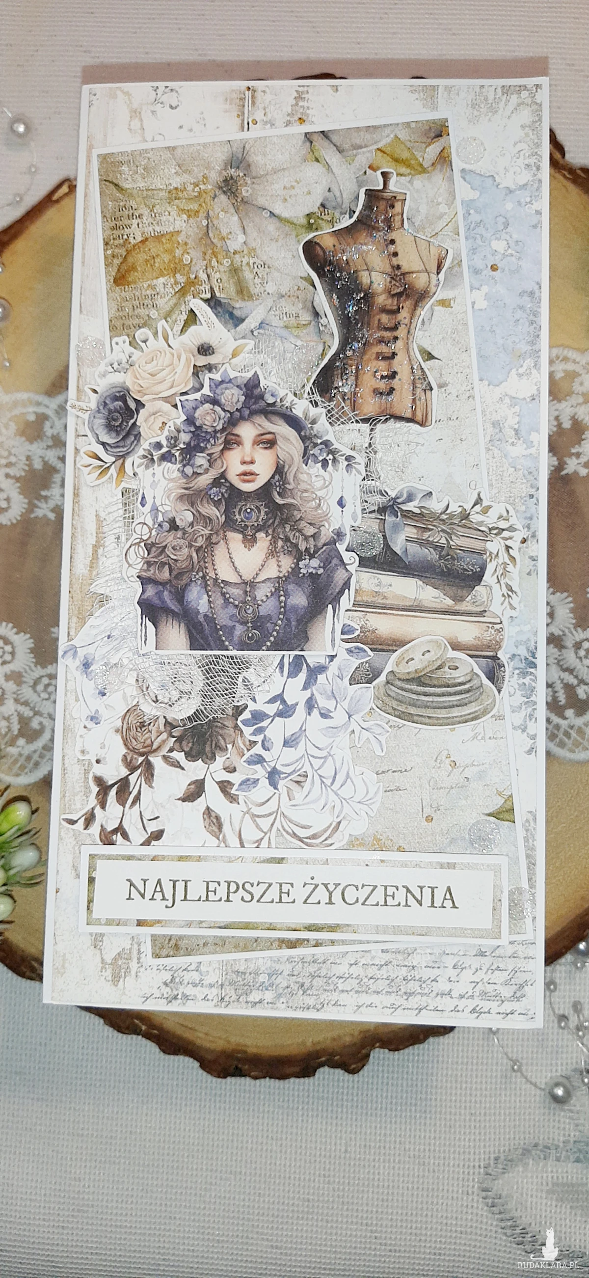 Kartka okolicznościowa, ręcznie wykonana metodą scrapbooking. Kartka do koperty. Oklejona z każdej strony. W środku znajduje się kartka podklejona taśmą dwustronną na życzenia. Mogę też wydrukować życzenia. Wymiary kartki to 20,5x10,5 cm. W zestawie z kopertą.