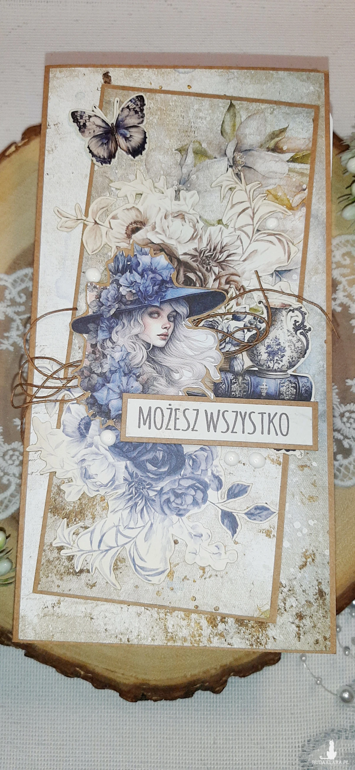Kartka okolicznościowa, ręcznie wykonana metodą scrapbooking na bazie kraftowej. Kartka do koperty. Oklejona z każdej strony. W środku znajduje się kartka podklejona taśmą dwustronną na życzenia. Mogę też wydrukować życzenia. Wymiary kartki to 20,5x10,5 cm. W zestawie z kopertą kraftową.