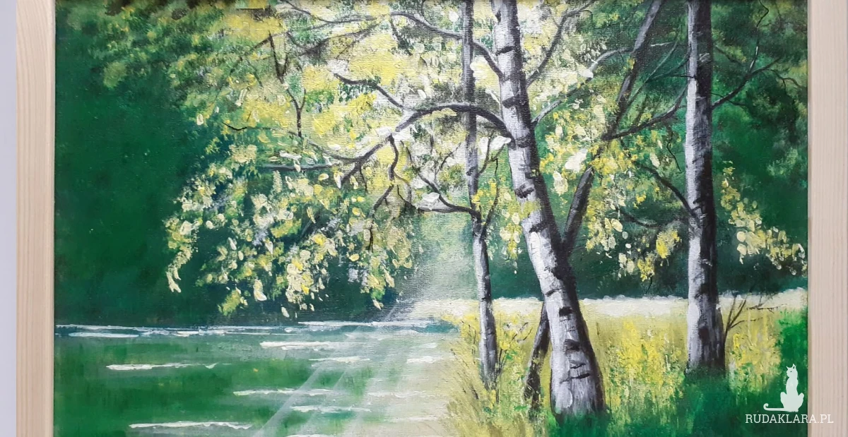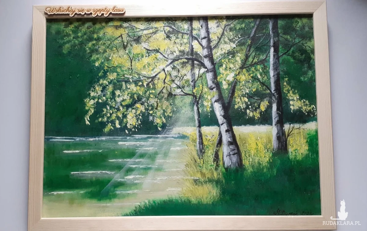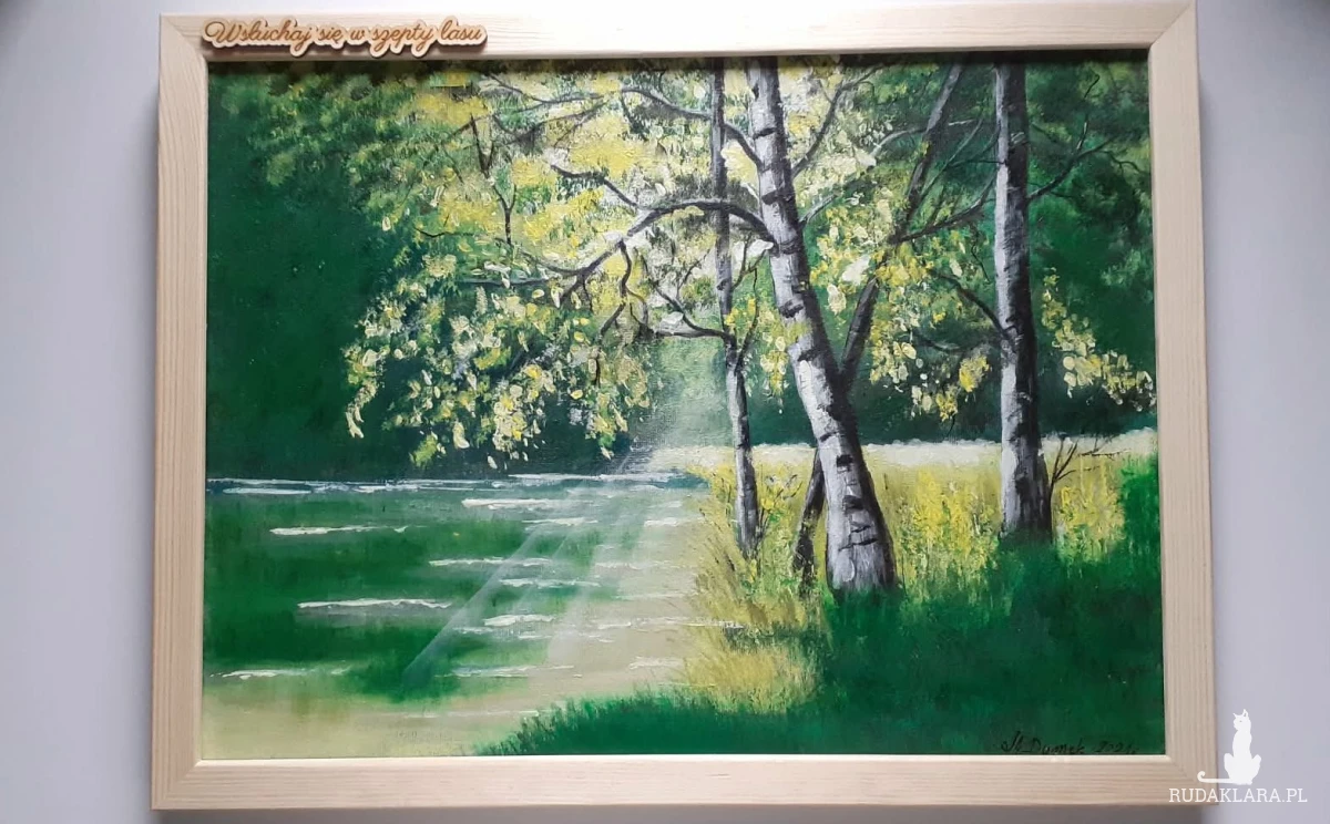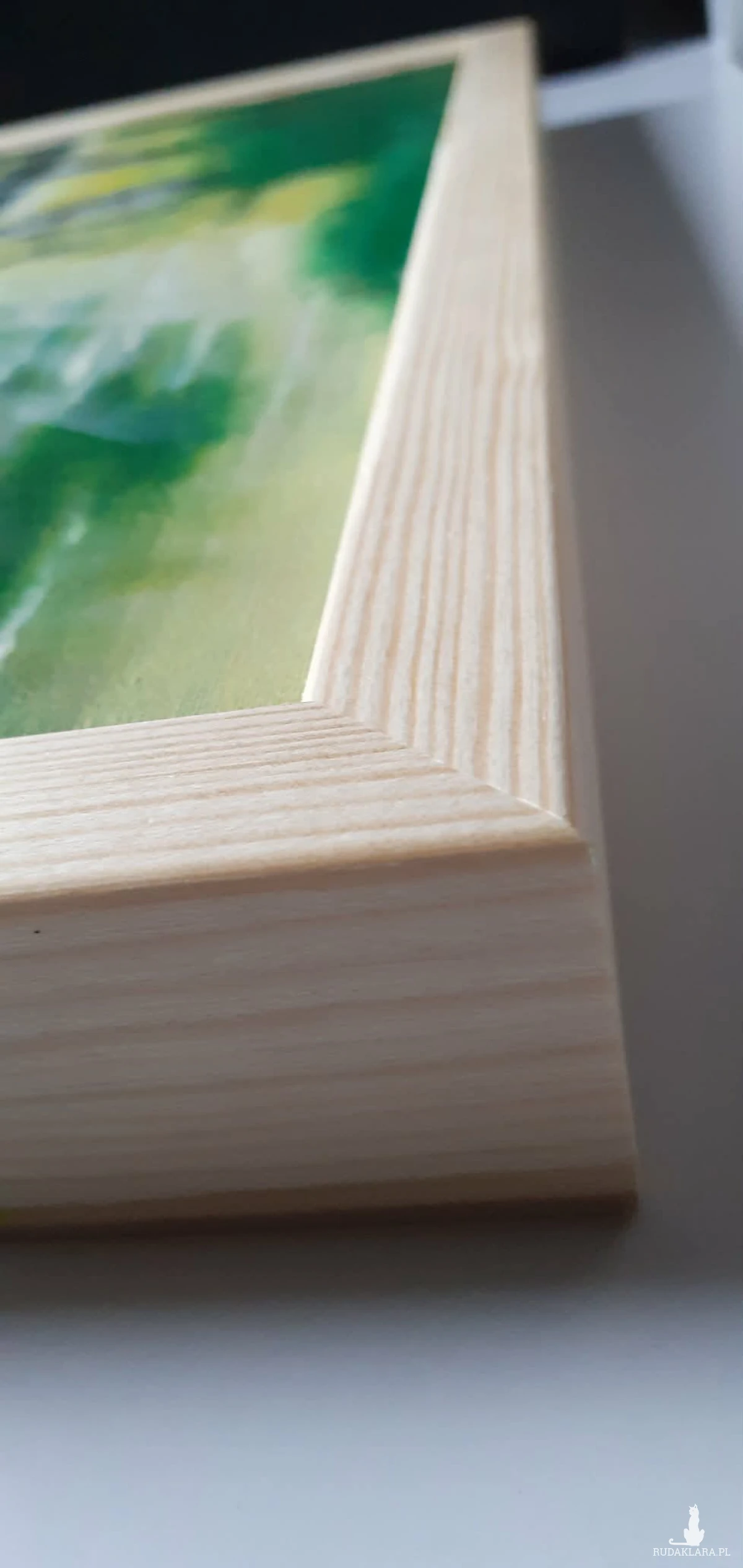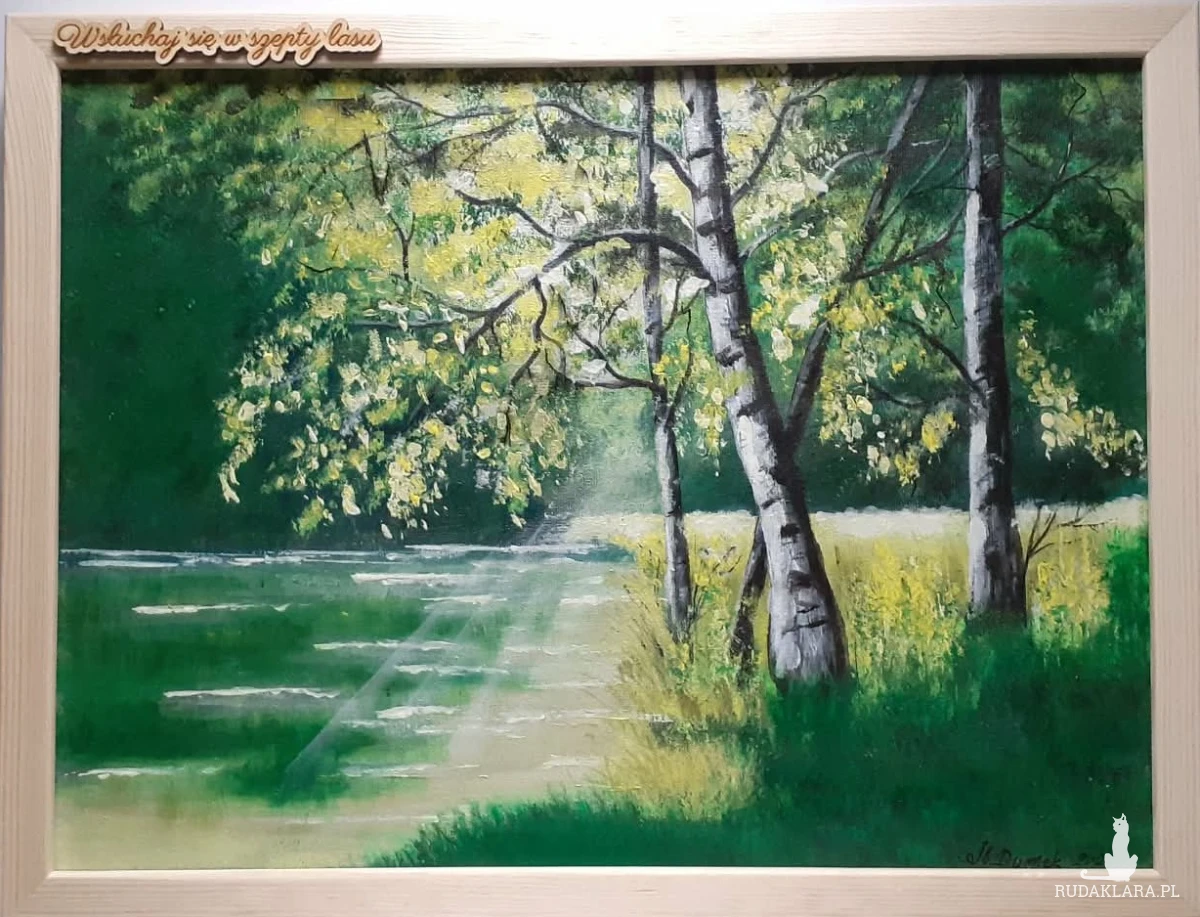 Obraz duszą malowany, gotowy na prezent pejzaż w ramie. Wprowadzi do wnętrza naturę, spokój, świeżość, pozytywną energię.