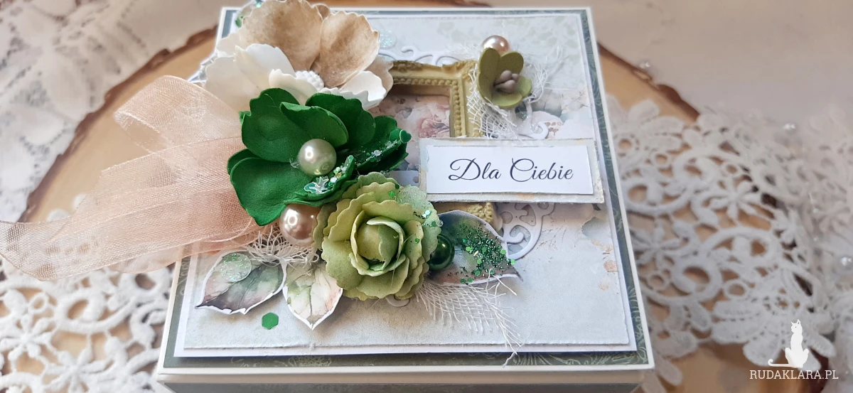Czekoladownik czyli ozdobne pudełko na czekoladę o wymiarach 10x10x1,8 cm. Zmieści się do niego czekoladada typu Ritter Sport. W środku mogę umieścić karteczkę na życzenia i kopertę na pieniążki.