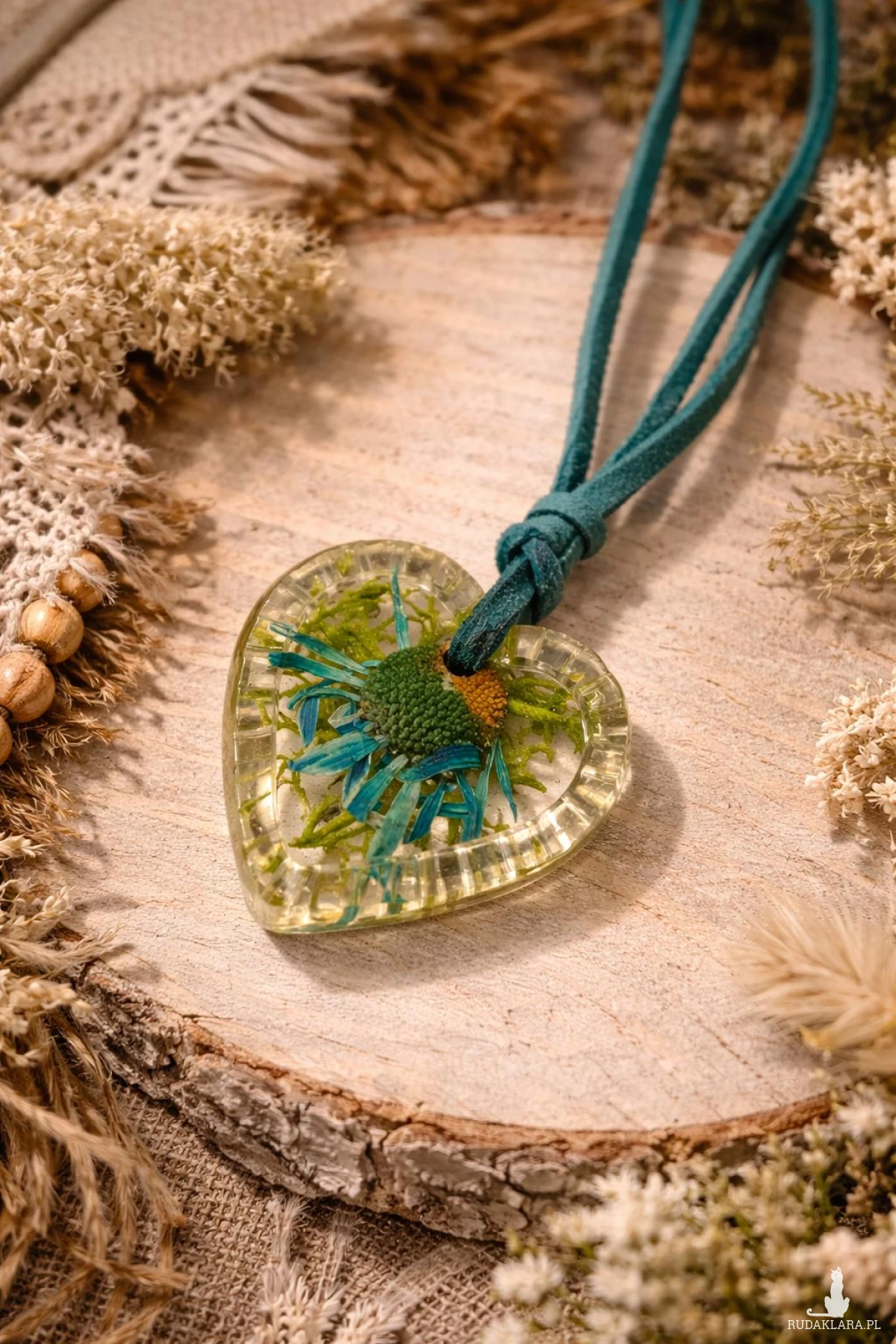 Transparentna żywica pięknie eksponuje rośliny, nadając biżuterii głębi i naturalnego charakteru.