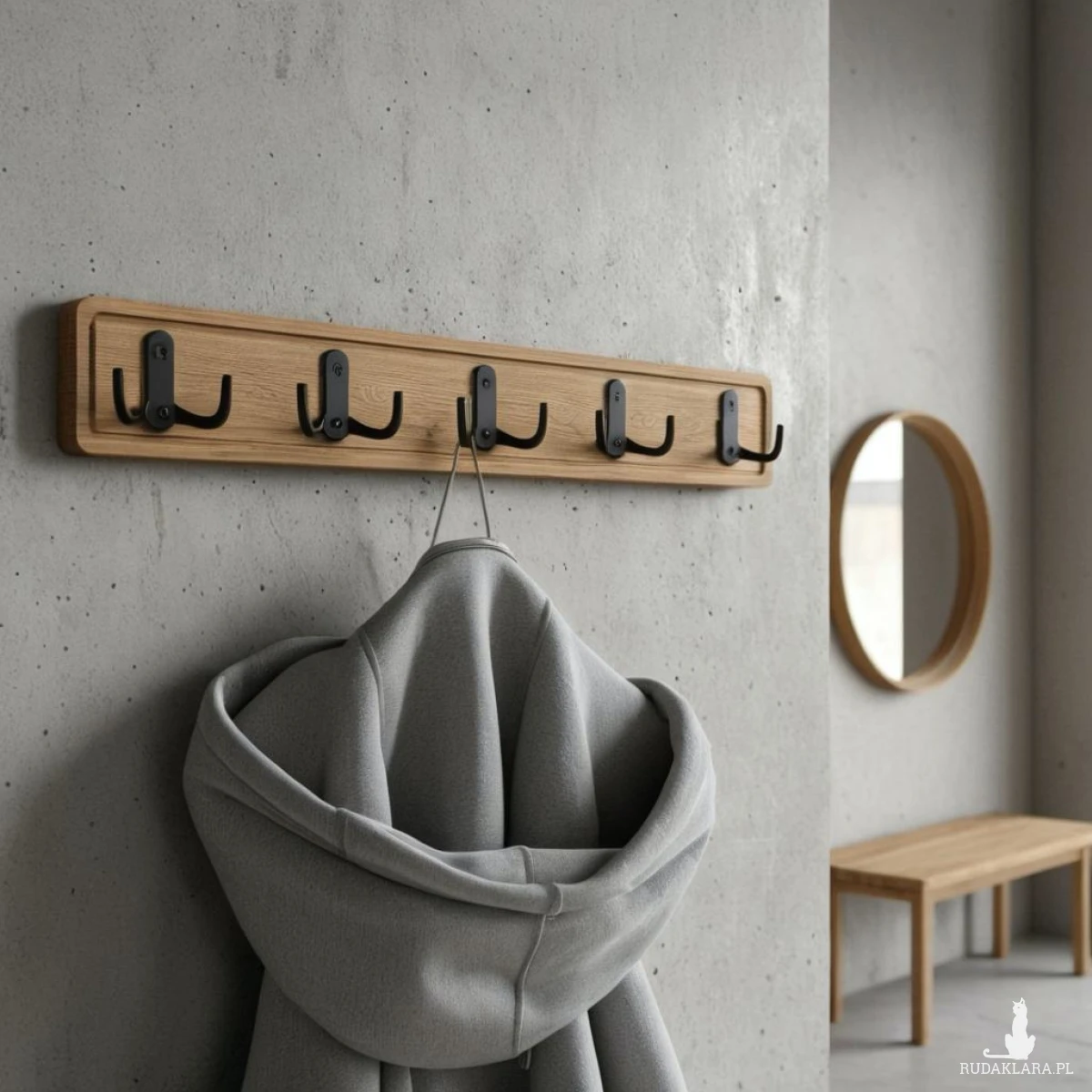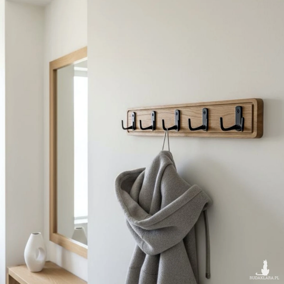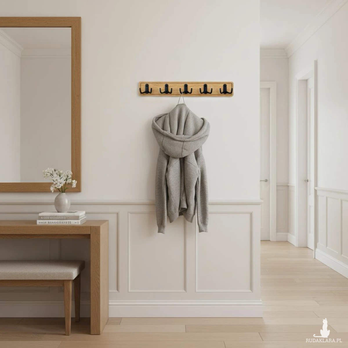 Solidność: 5 podwójnych, czarnych haczyków (już zamontowanych!) pomieści wszystko – od ciężkich płaszczy w przedpokoju, po ręczniki w łazience czy akcesoria w kuchni.