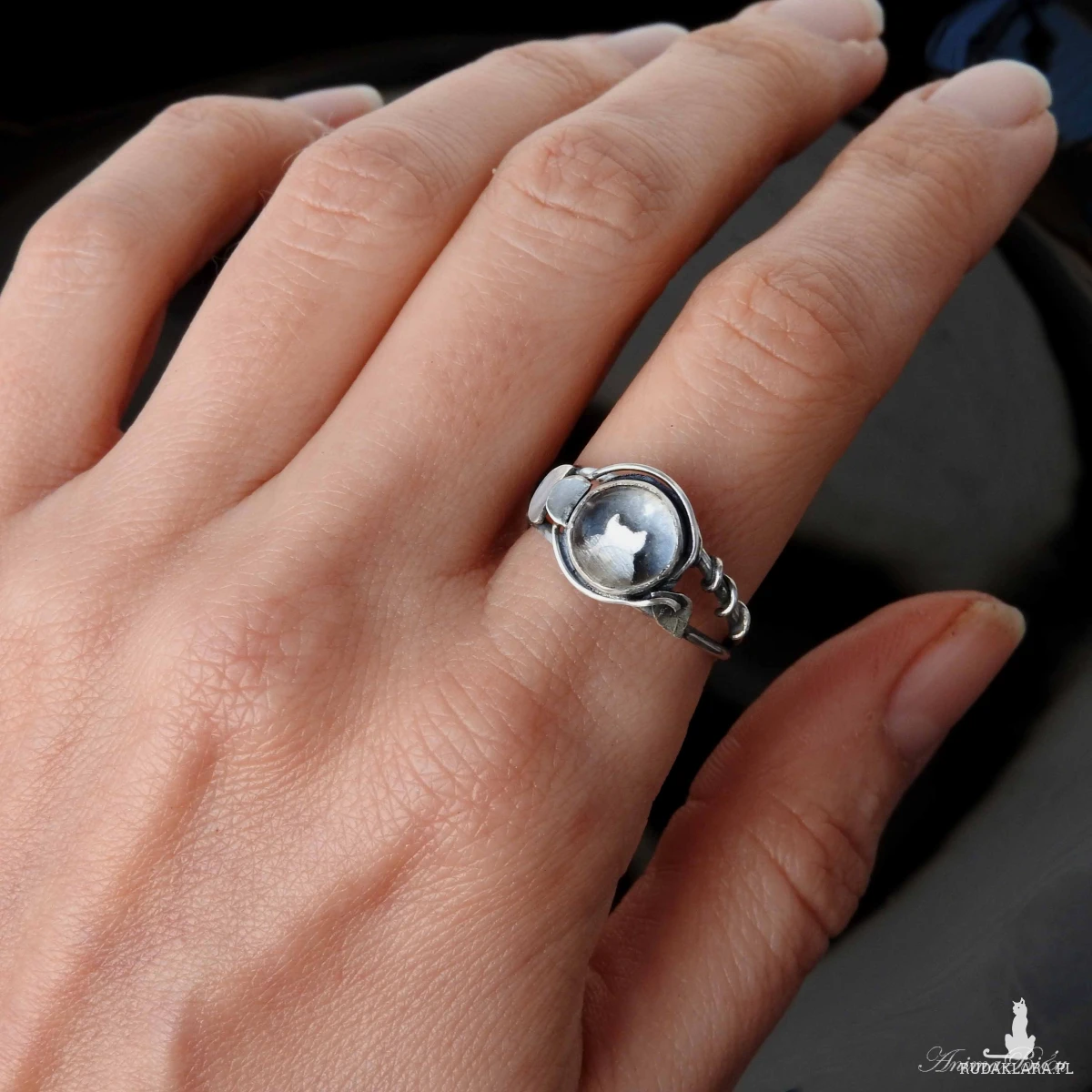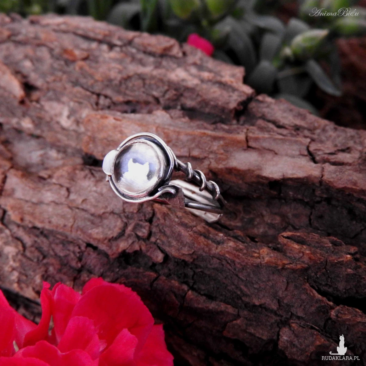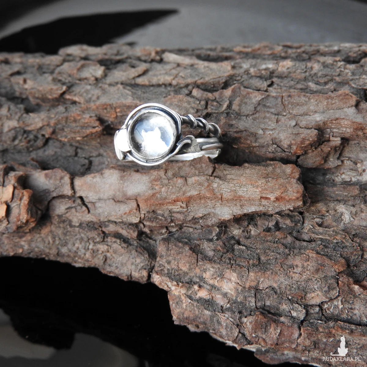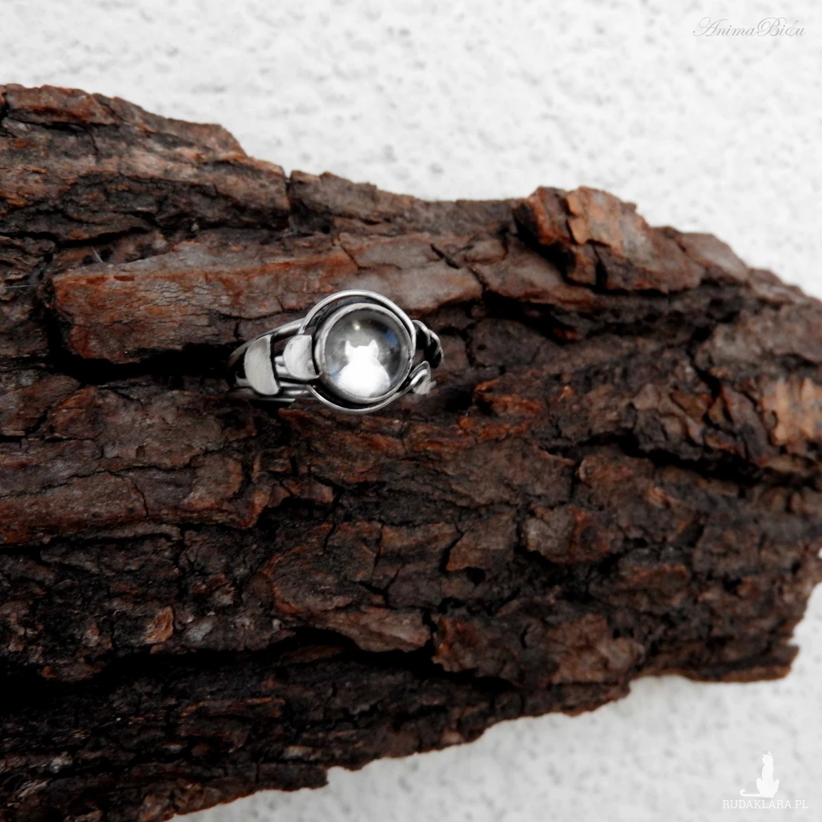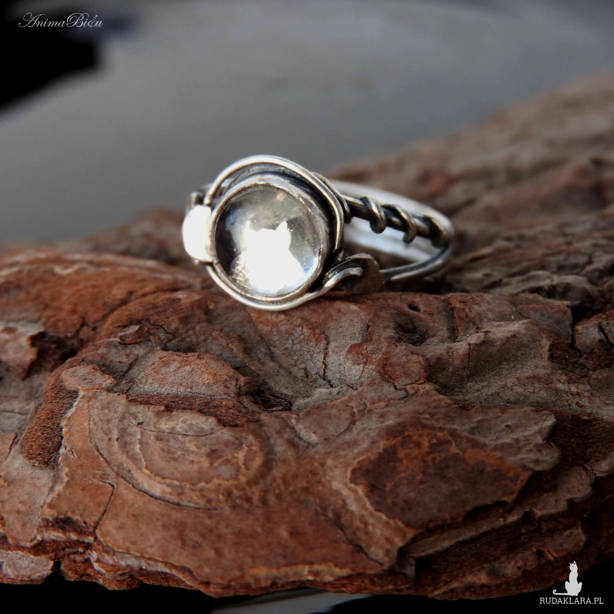 Pierścionek srebrny z kryształem górskim. Pierścionek
