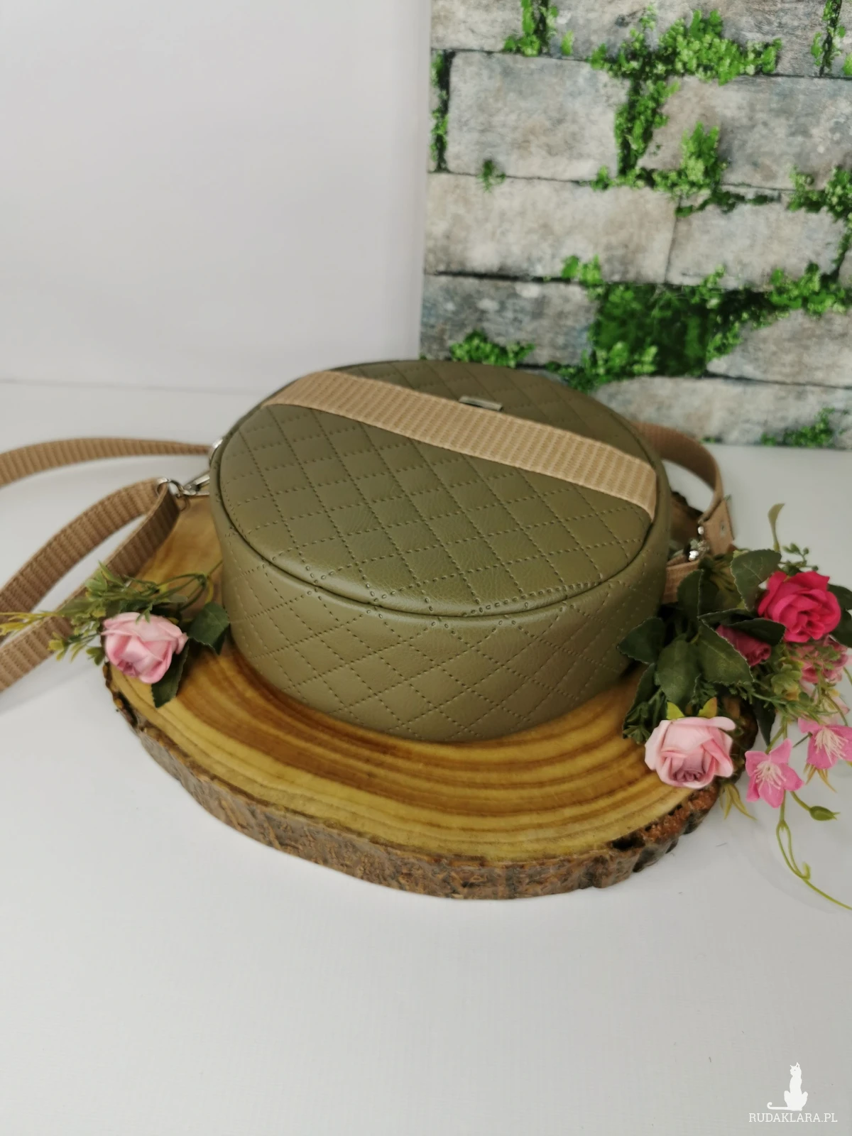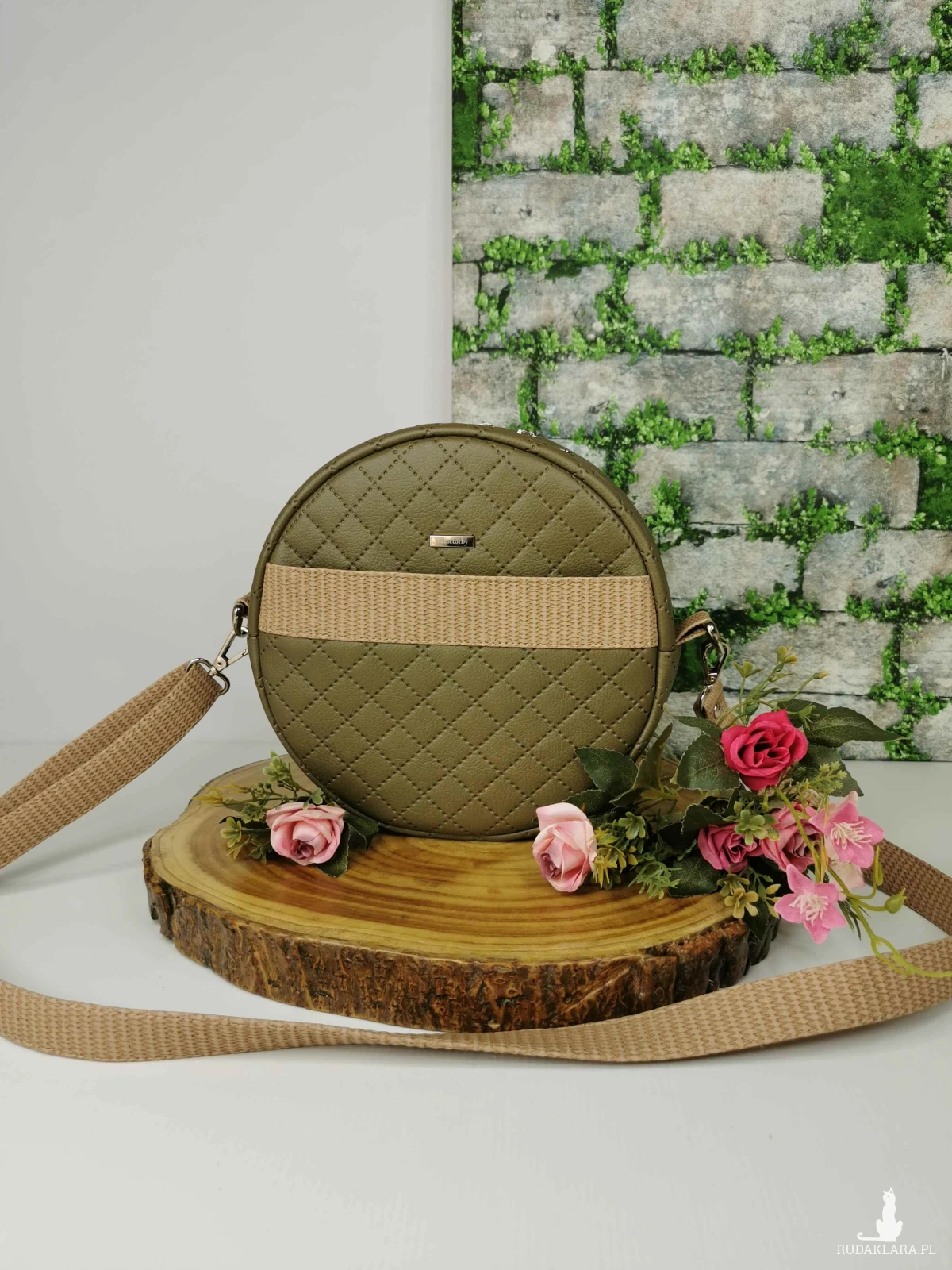 Torebka zapinana na zamek. Wykonana z ekoskóry pikowanej w kolorze zielonym/ khaki , z dodatkiem ekoskóry w kolorze beżowym. Na przodzie oraz tyle torebki kieszeń zapinana na zapięcie magnetyczne.
