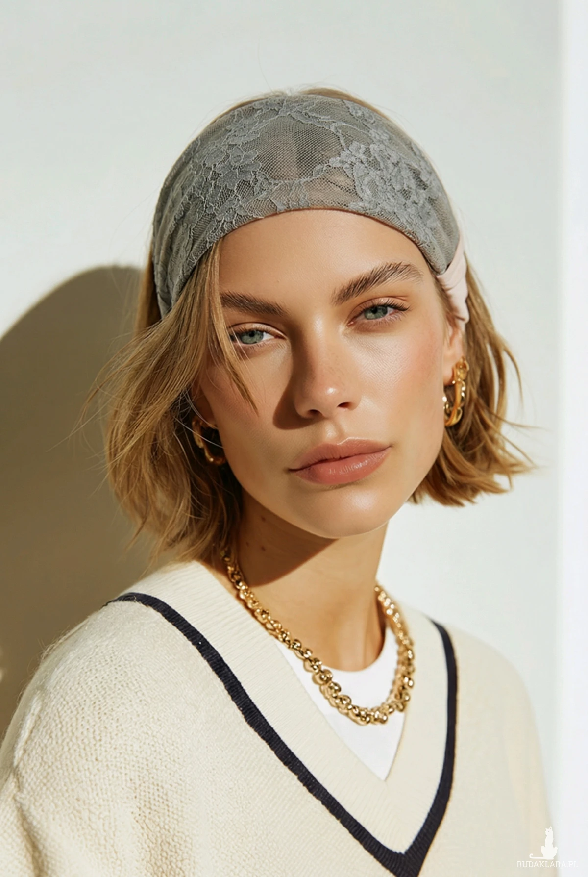 Opaska regulowana koronkowa Boho w odcieniach szarości i beżu polecam boks A1