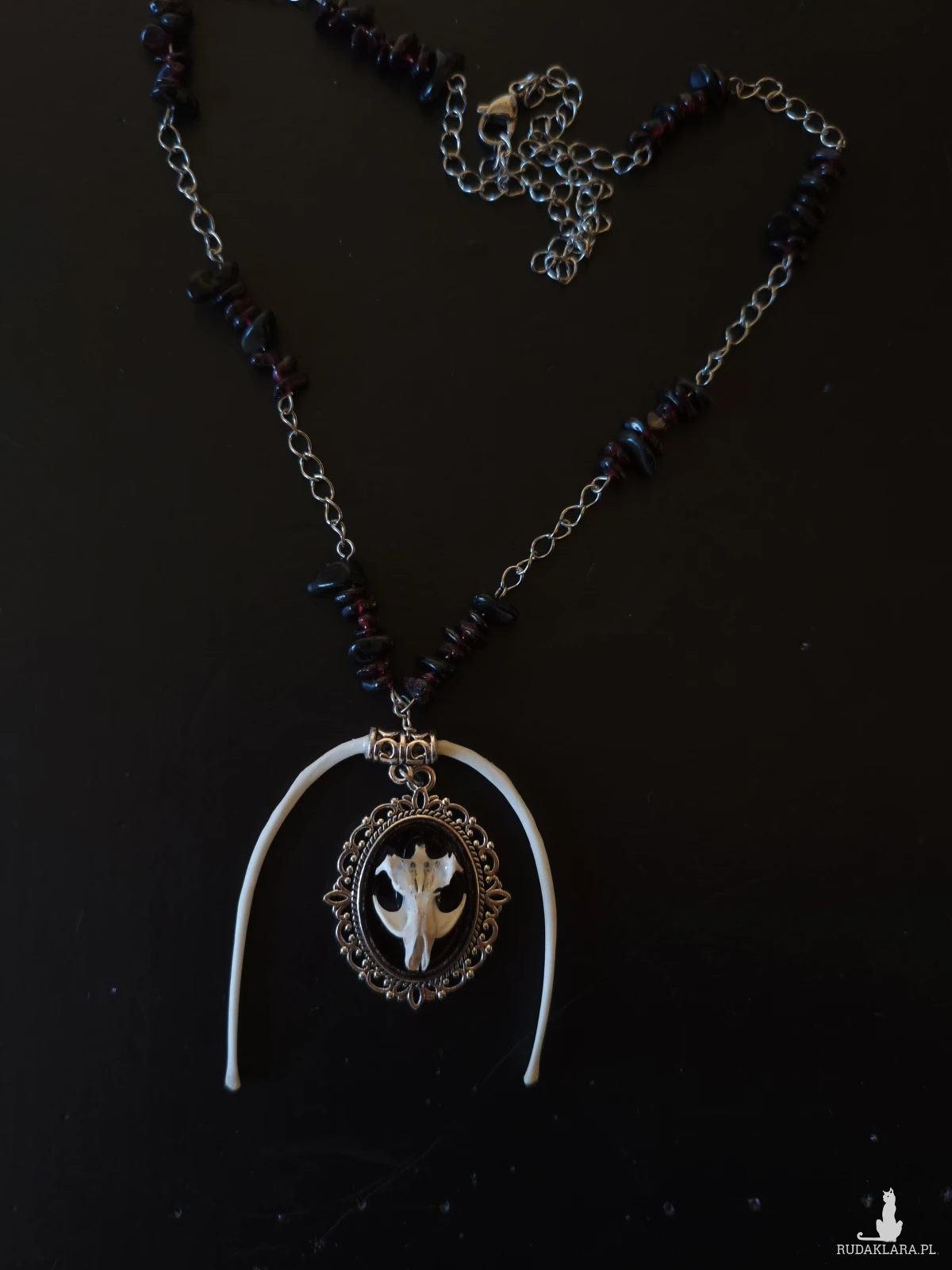 Na profilu znajdą państwo biżuterie oraz niestandardowe ramki z czaszkami/ kośćmi zwierząt. Materiały z jakich korzystam to kamienie naturalne, kości oraz stal nierdzewna/chirurgiczna (rzadziej srebro) Kości pozyskiwane są etycznie! Wysyłki w piątek oraz weekend