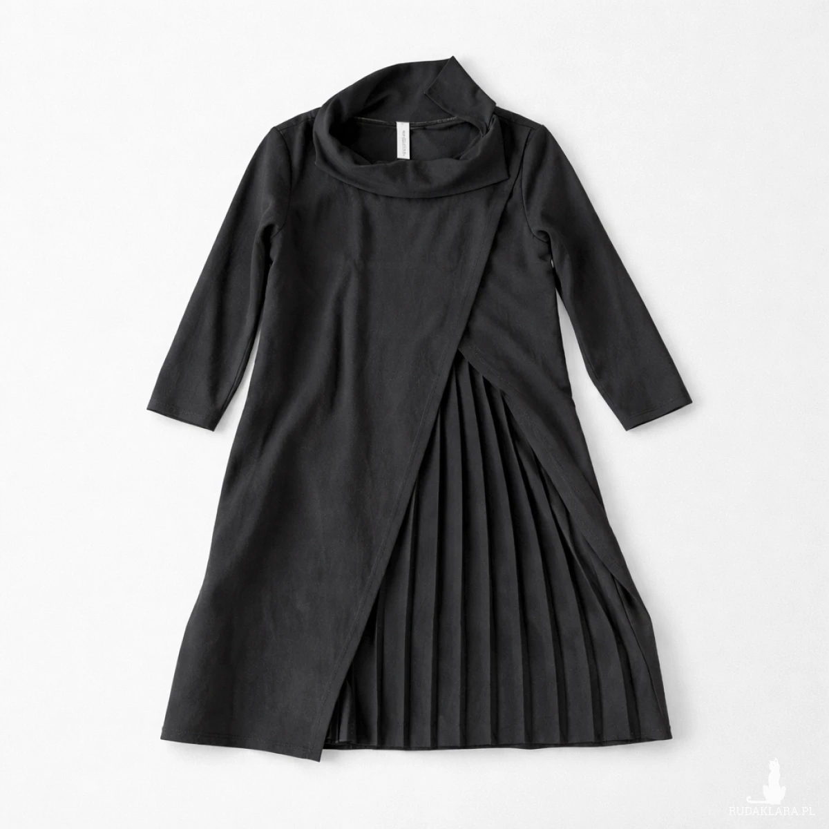 Czarna krótka sukienka albo bluzka długość w całości 100 cm firma New Collection Świetnie wygląda do glanów, bok plisowany w stylu retro polecam. Bardzo fajnie prezentuje się z marynarką niebieską