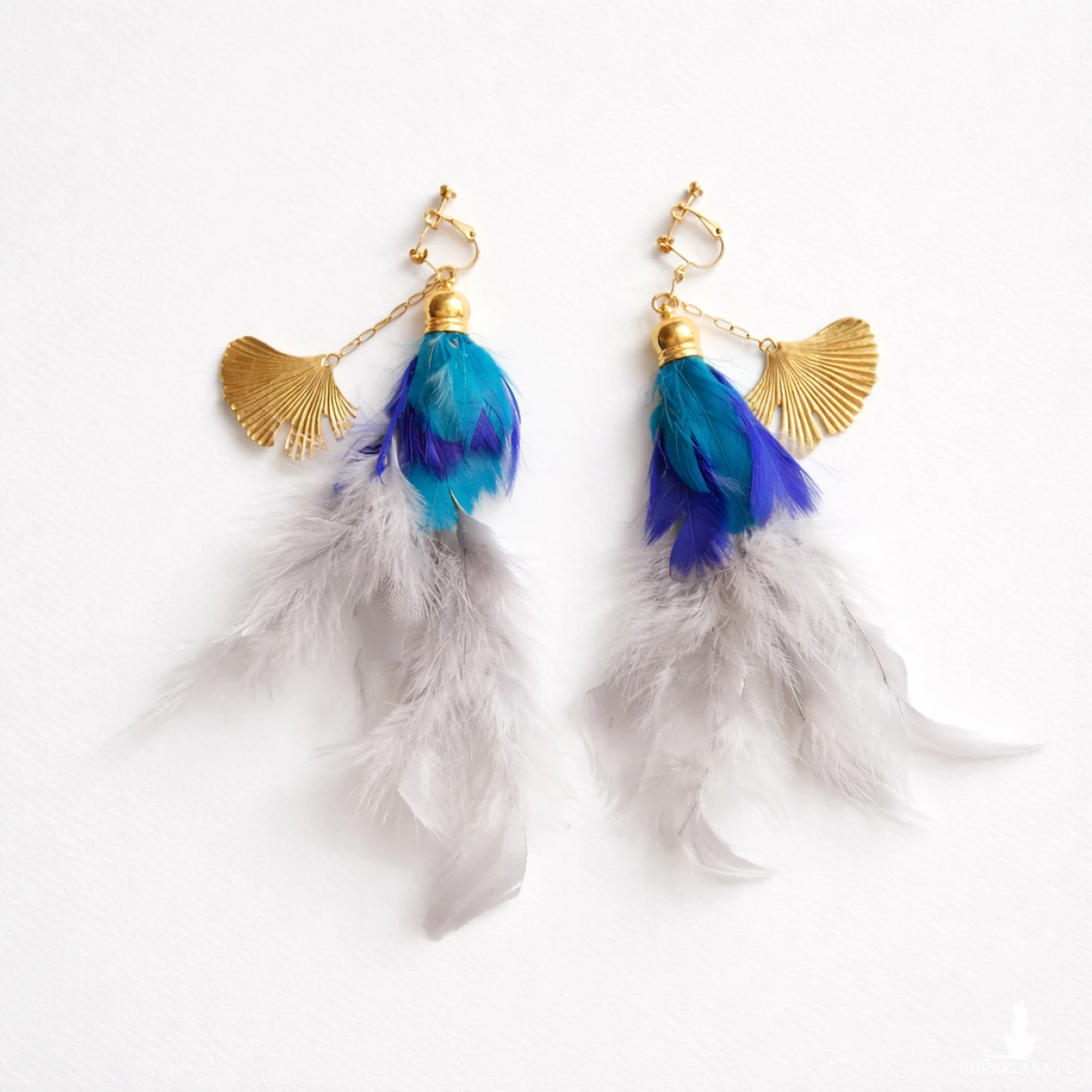 Klipsy przecudne pióro i miłorząb polecam wykonane w pojedynczym egzemplarzu