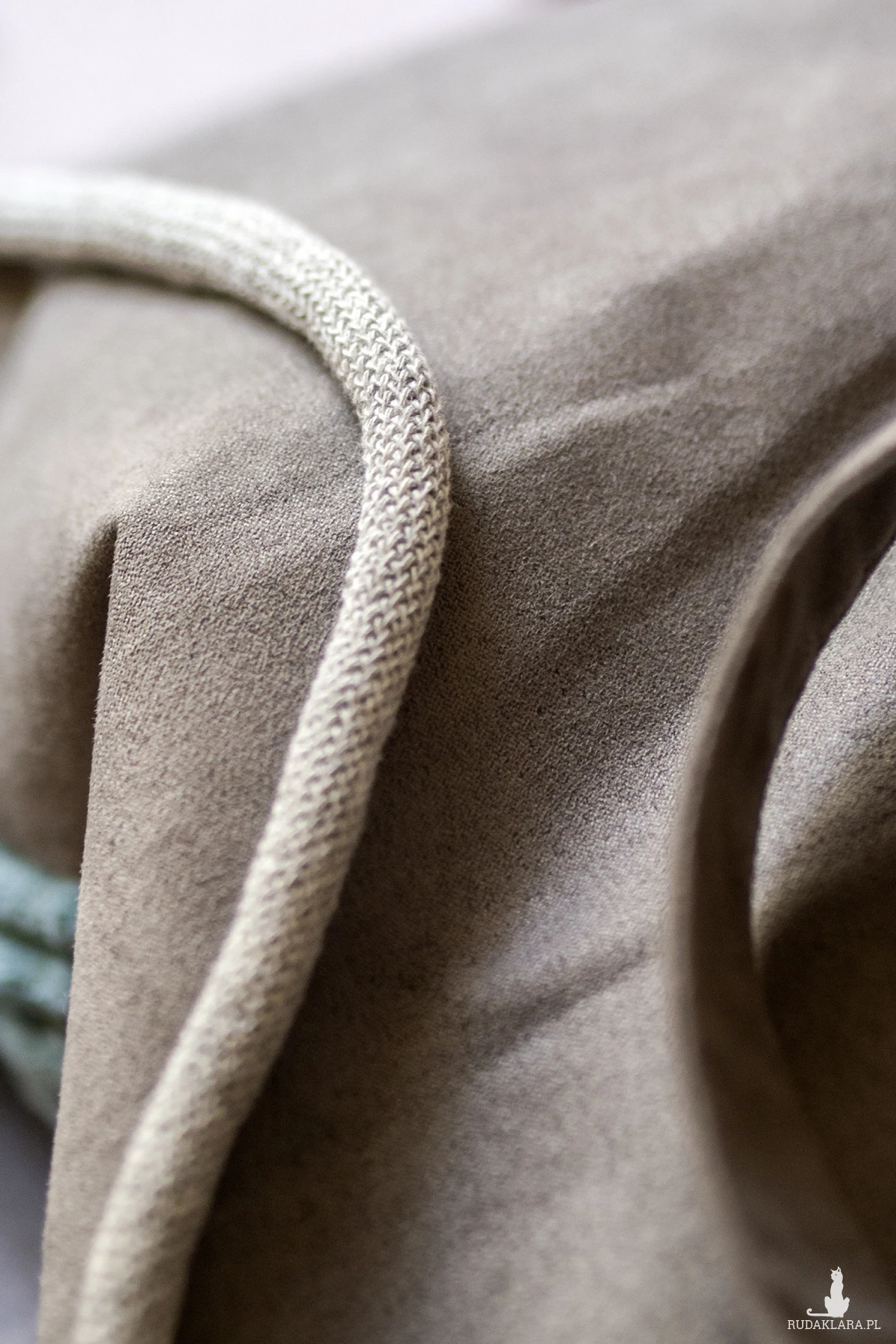 Grube, bawełniane sznurki w kolorze jasnoszarym.