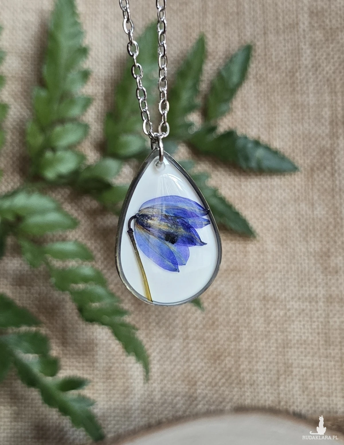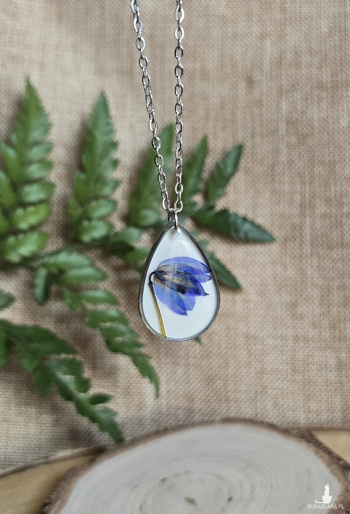 Oferuję Państwu unikalną biżuterię. Zawieszka jest wykonana z suszonych kwiatów i żywicy epoksydowej. Biżuteria jest wspaniałym i oryginalnym prezentem na lata.
