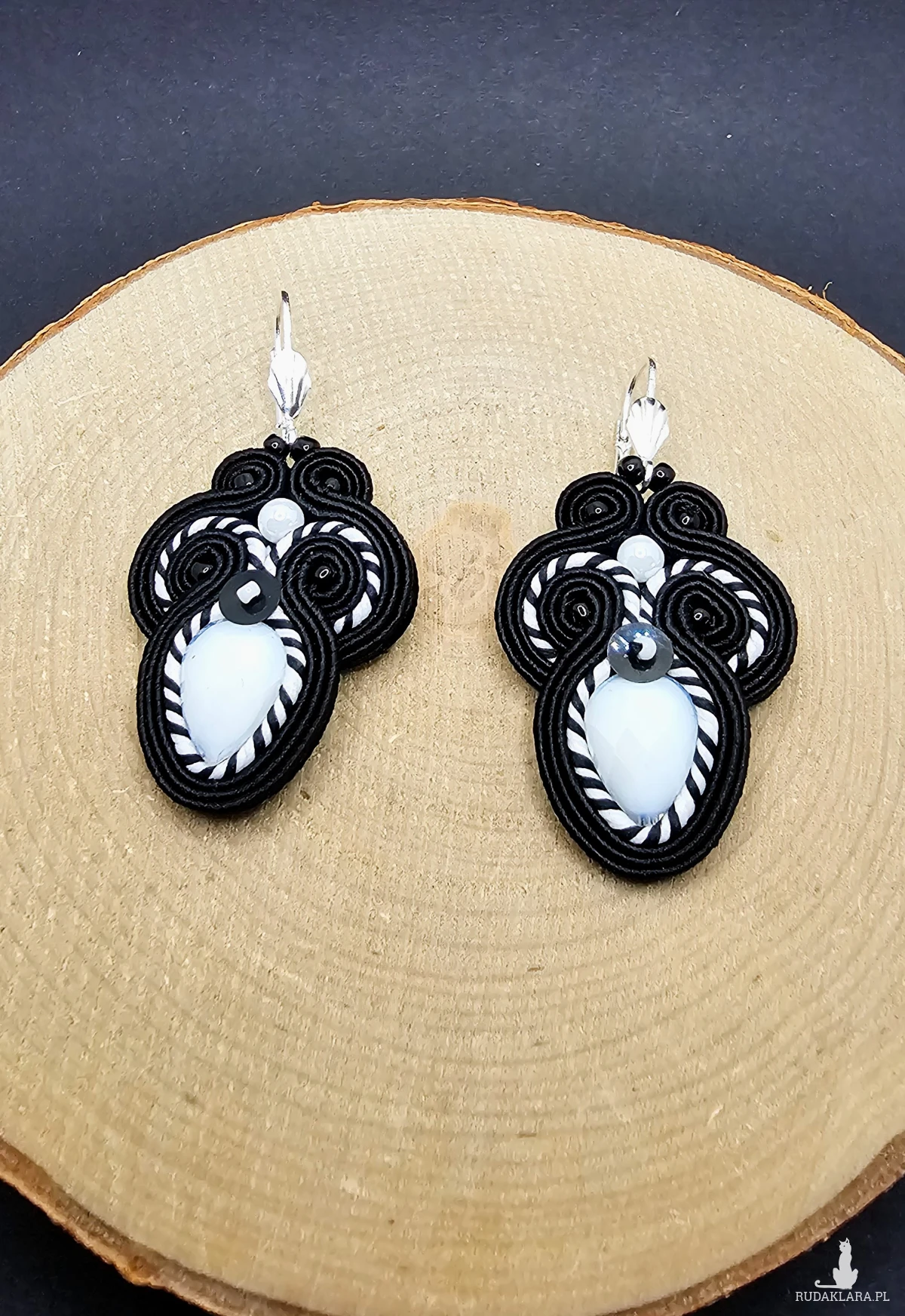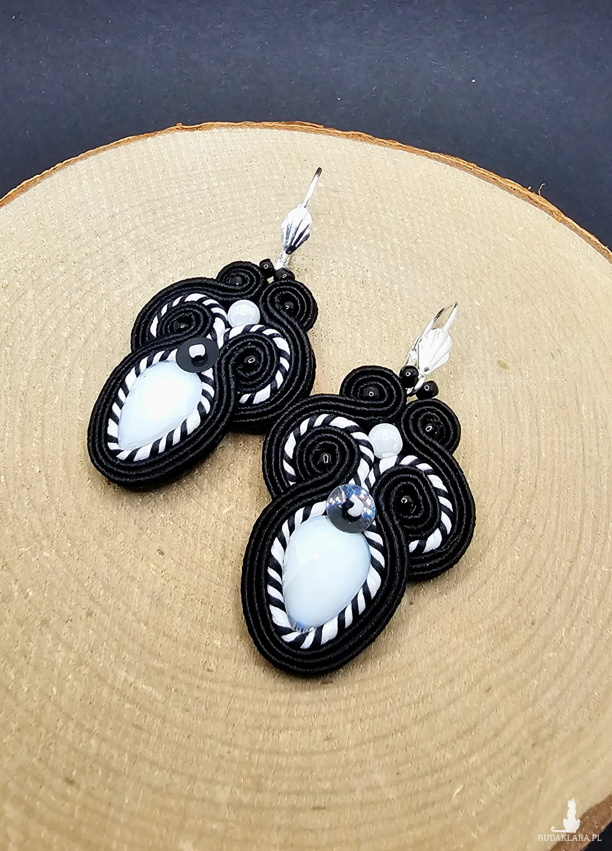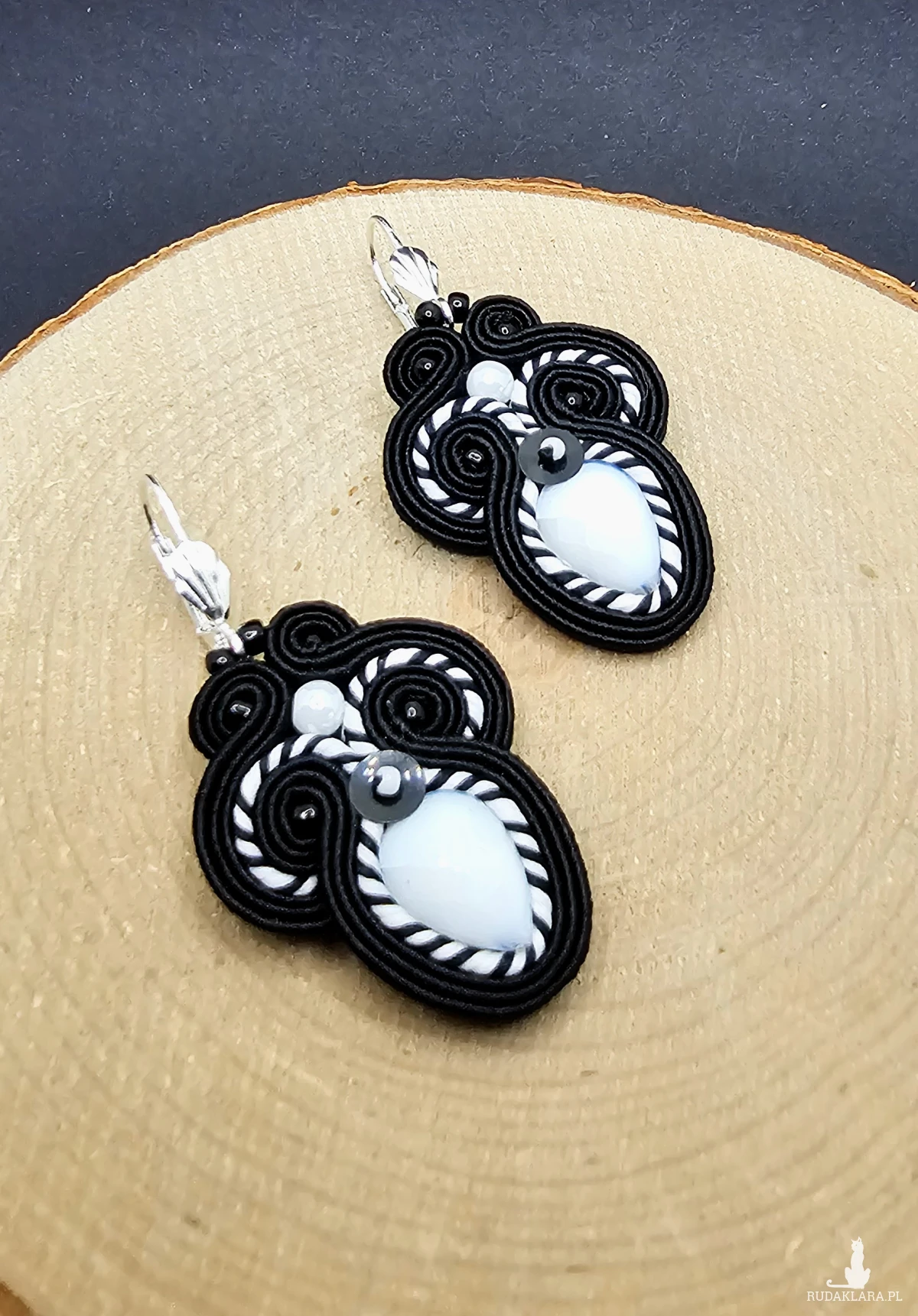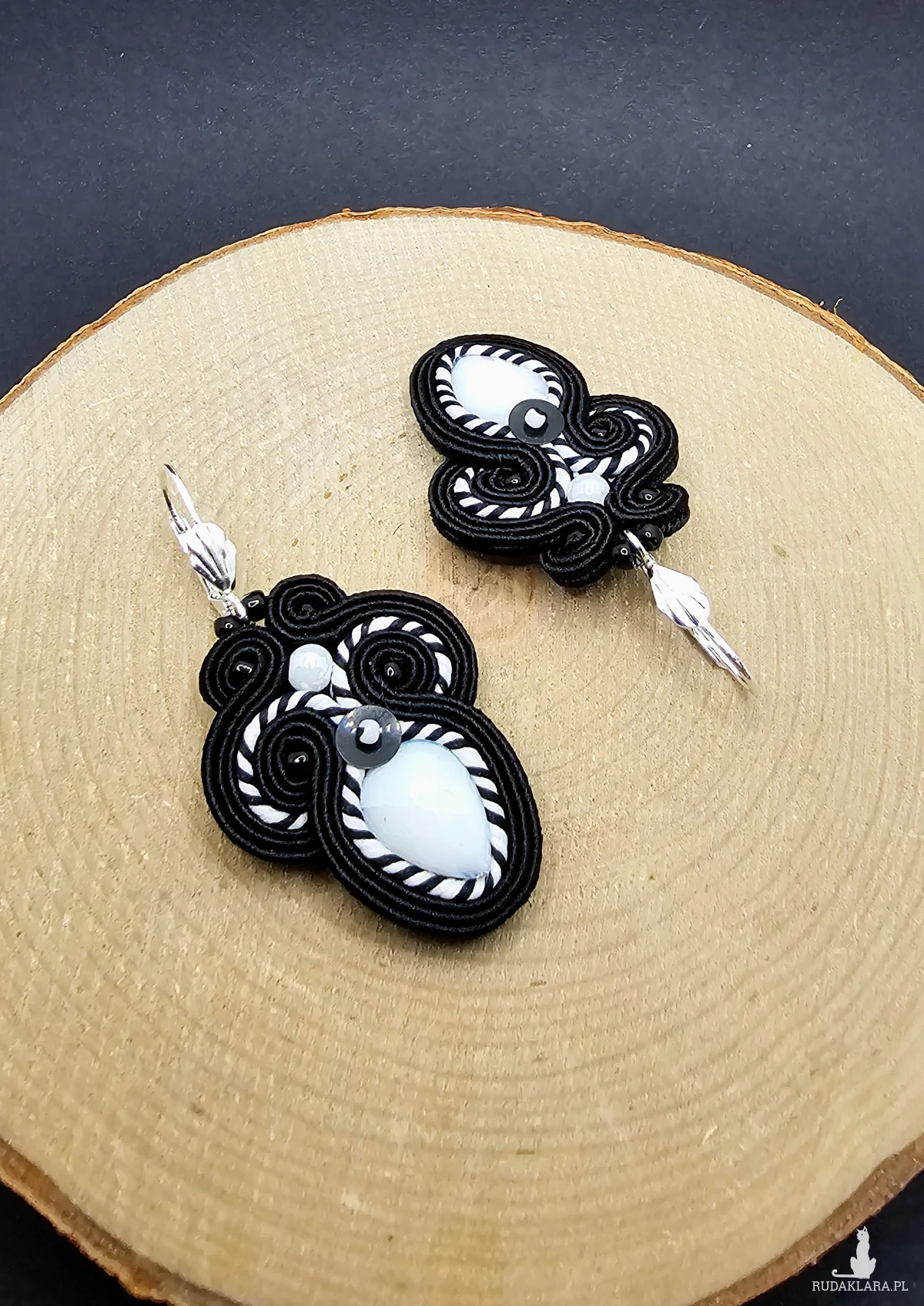 Czarno-białe kolczyki sutasz