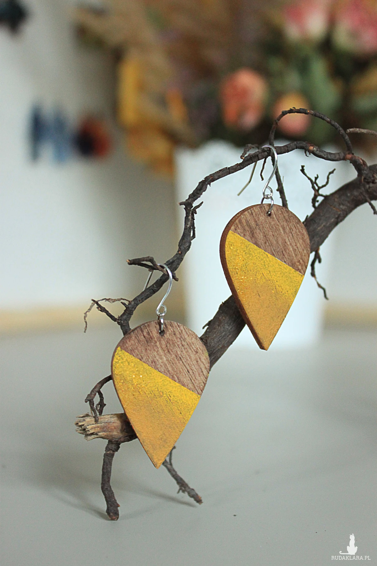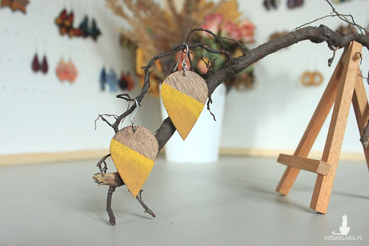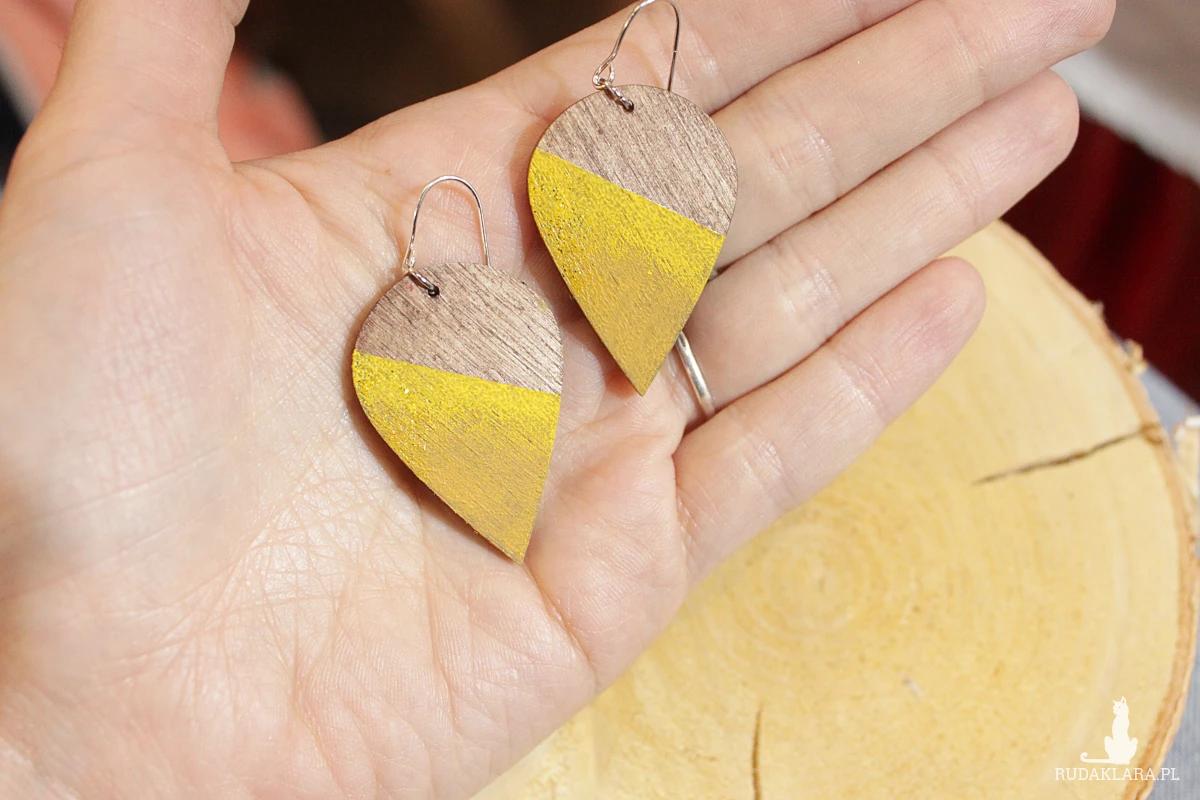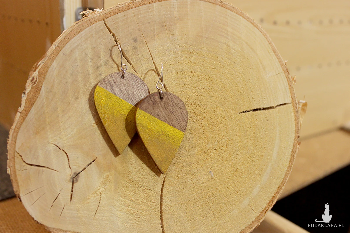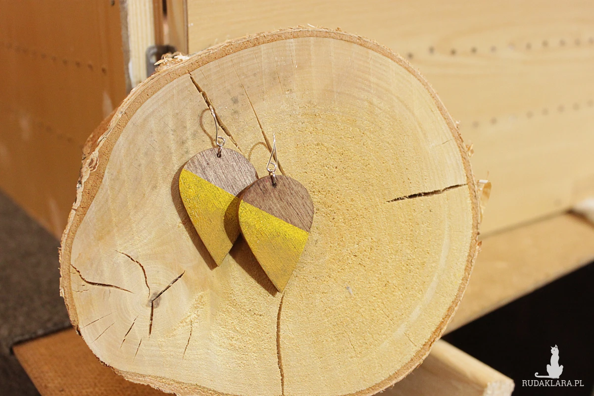 Ażurowe wiszące drewniane kolczyki.
