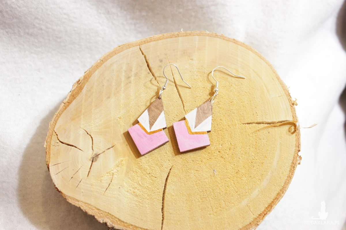 Hashtagi: #drewnianabizuteria #recznierobione #bizuteriahandmade #rożowekolczyki #pastelove #geometria #bizuteriaeko #springstyle #polskierekodzielo #minimalizm #prezentdlaniej #slowfashion #biżuteriaautorska