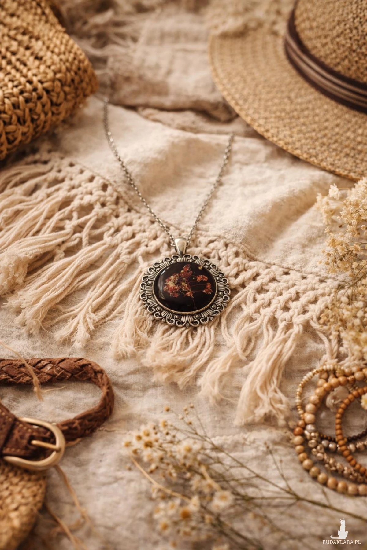 Ozdobna, antyczna oprawa nadaje biżuterii charakter vintage i sprawia, że naszyjnik staje się wyjątkowym dodatkiem do stylizacji – zarówno codziennych, jak i wieczorowych.