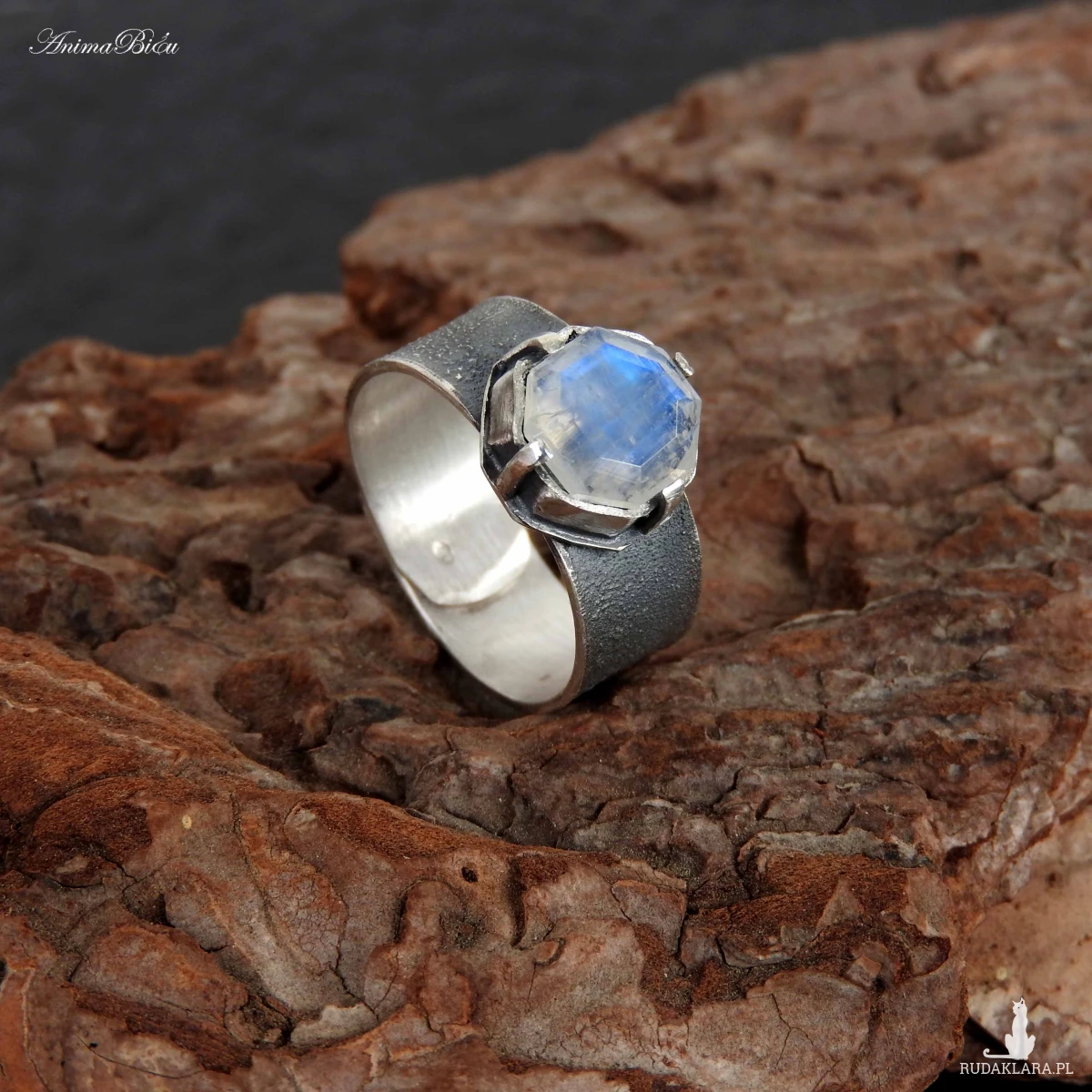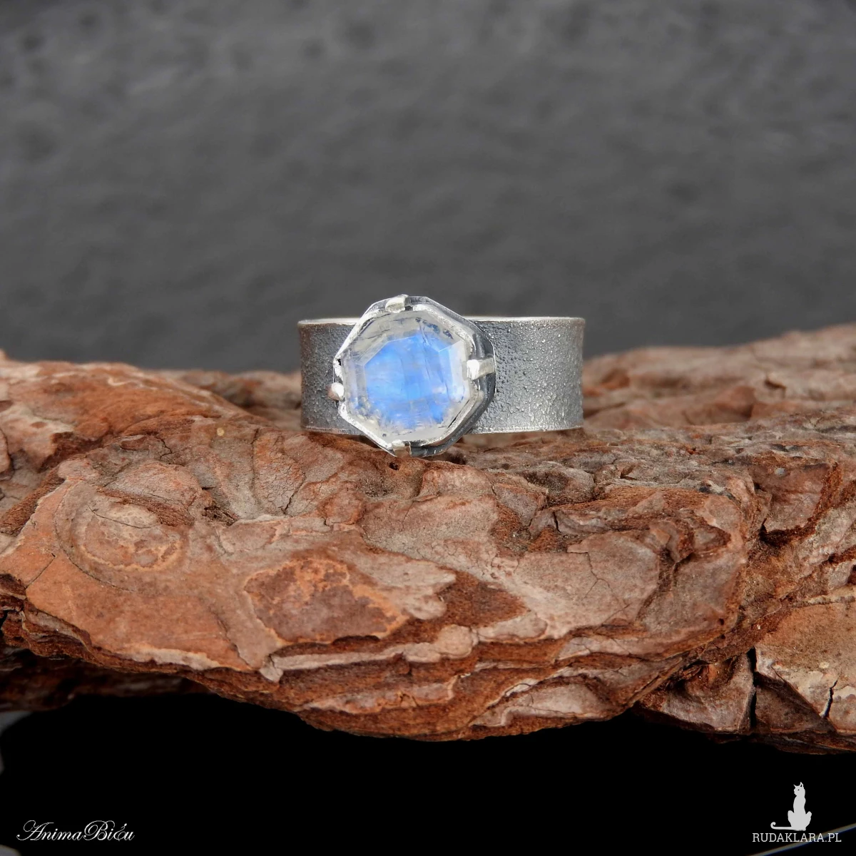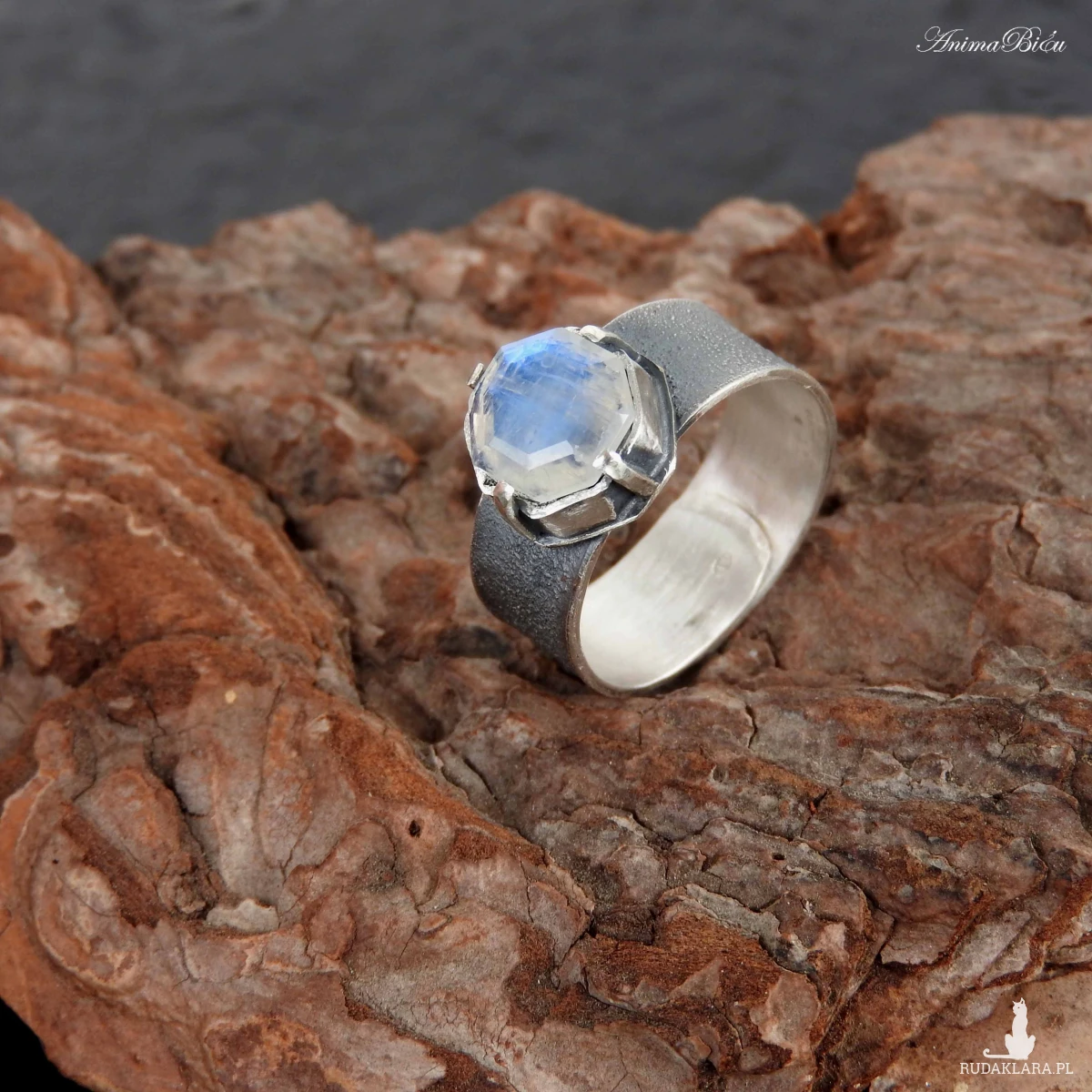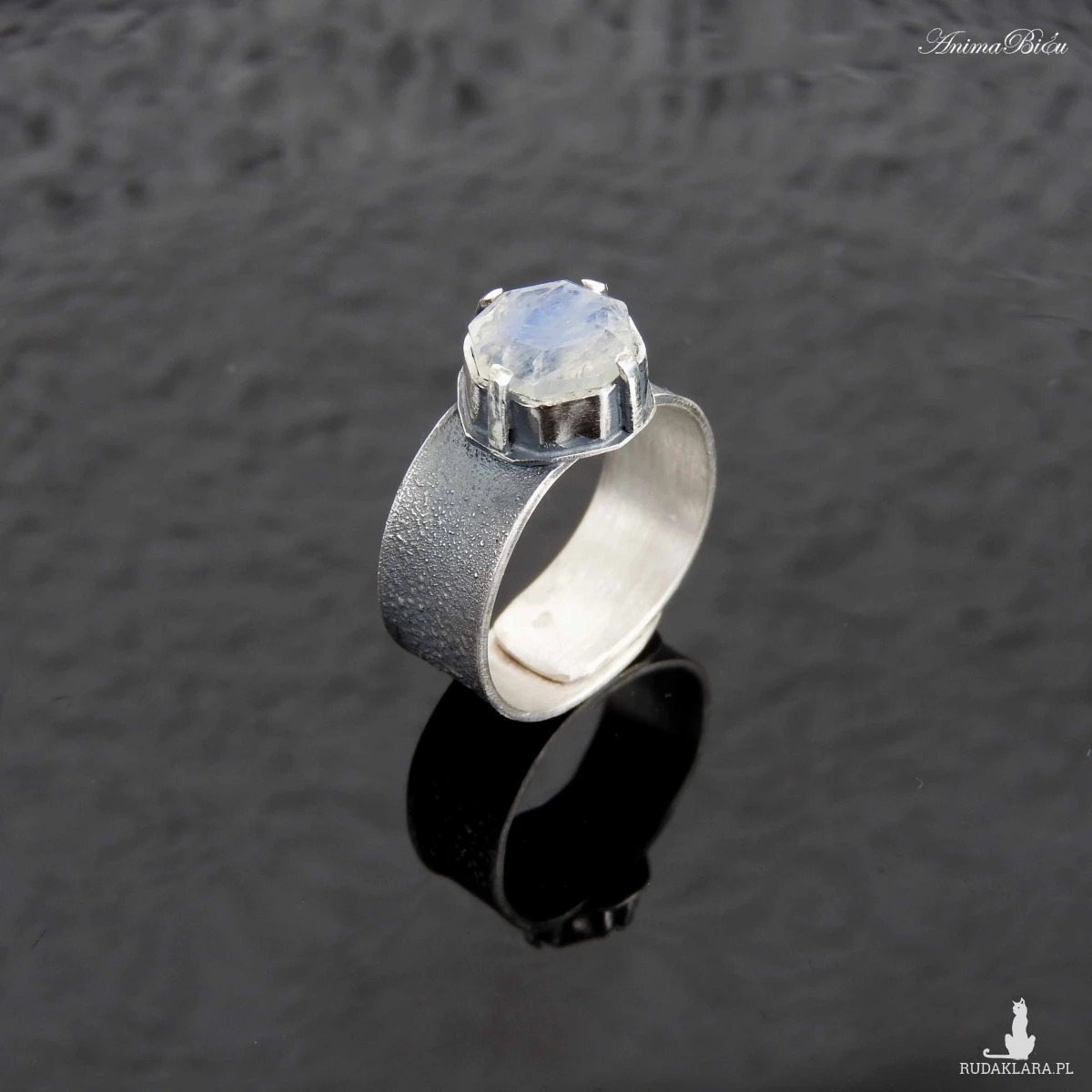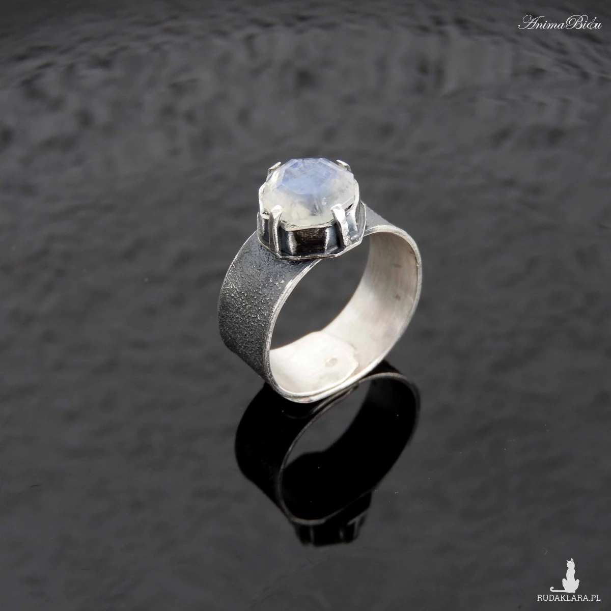 Obrączka srebrna z kamieniem księżycowym. Piękny, wysokiej